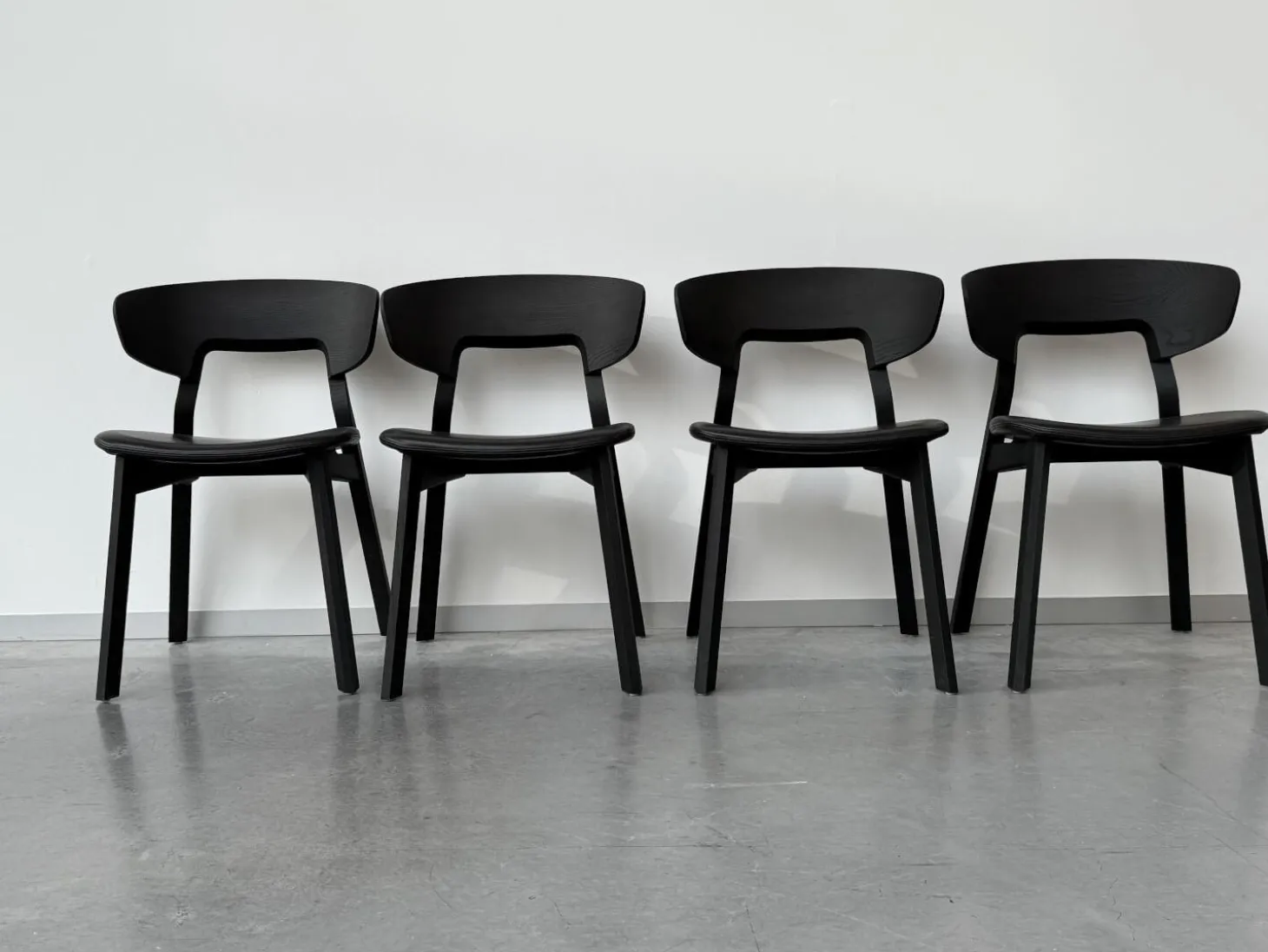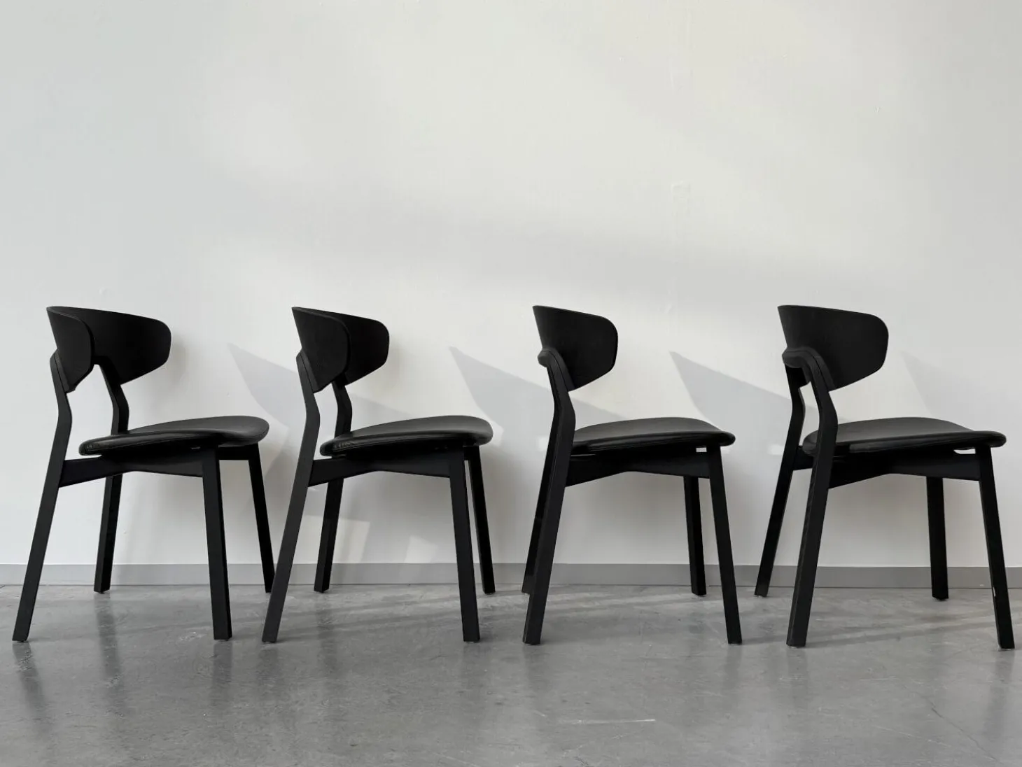 4er Set Stuhl Nonoto Comfort Bezug Leder Reinhardt Jepard Black Schwarz Gestell Eiche Gebeizt Graphite Schwarz