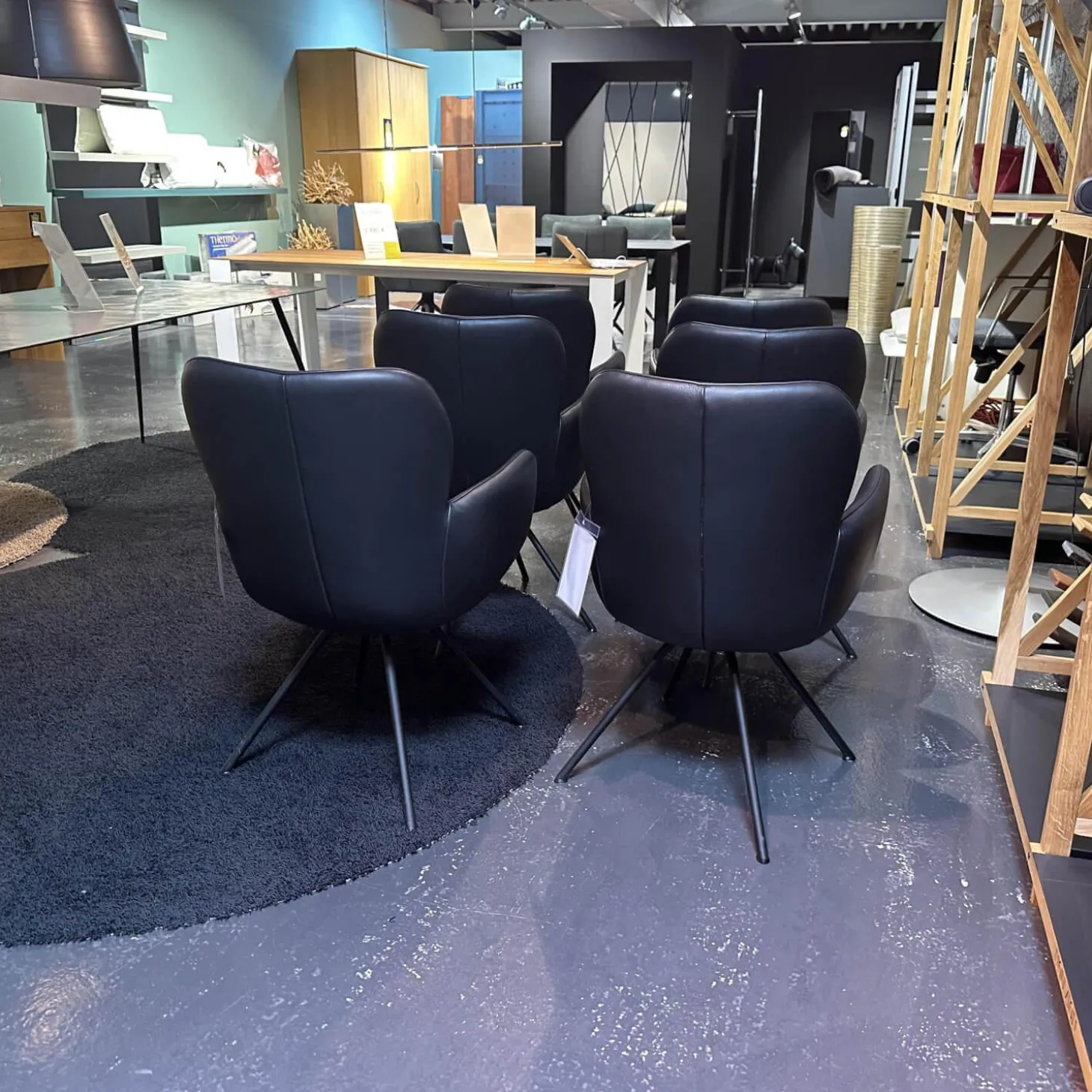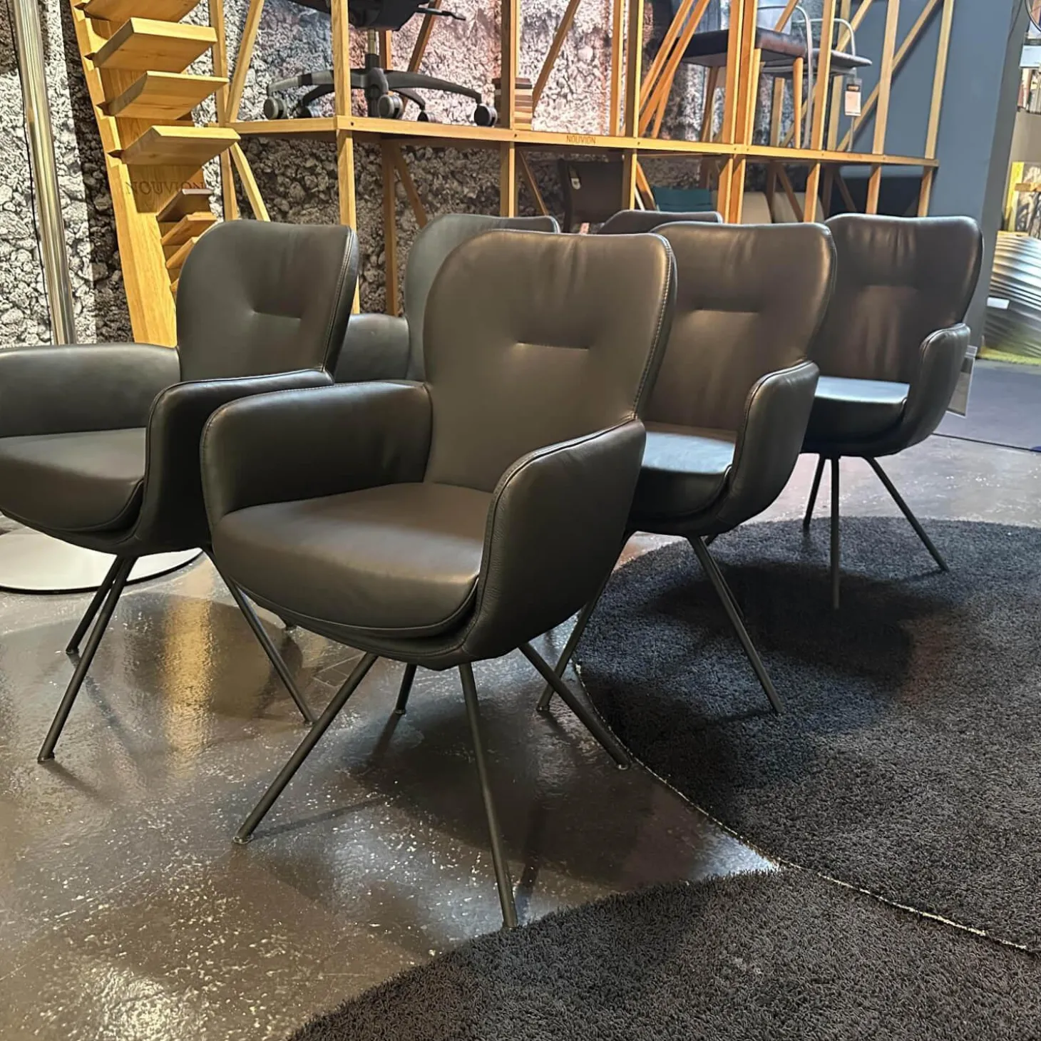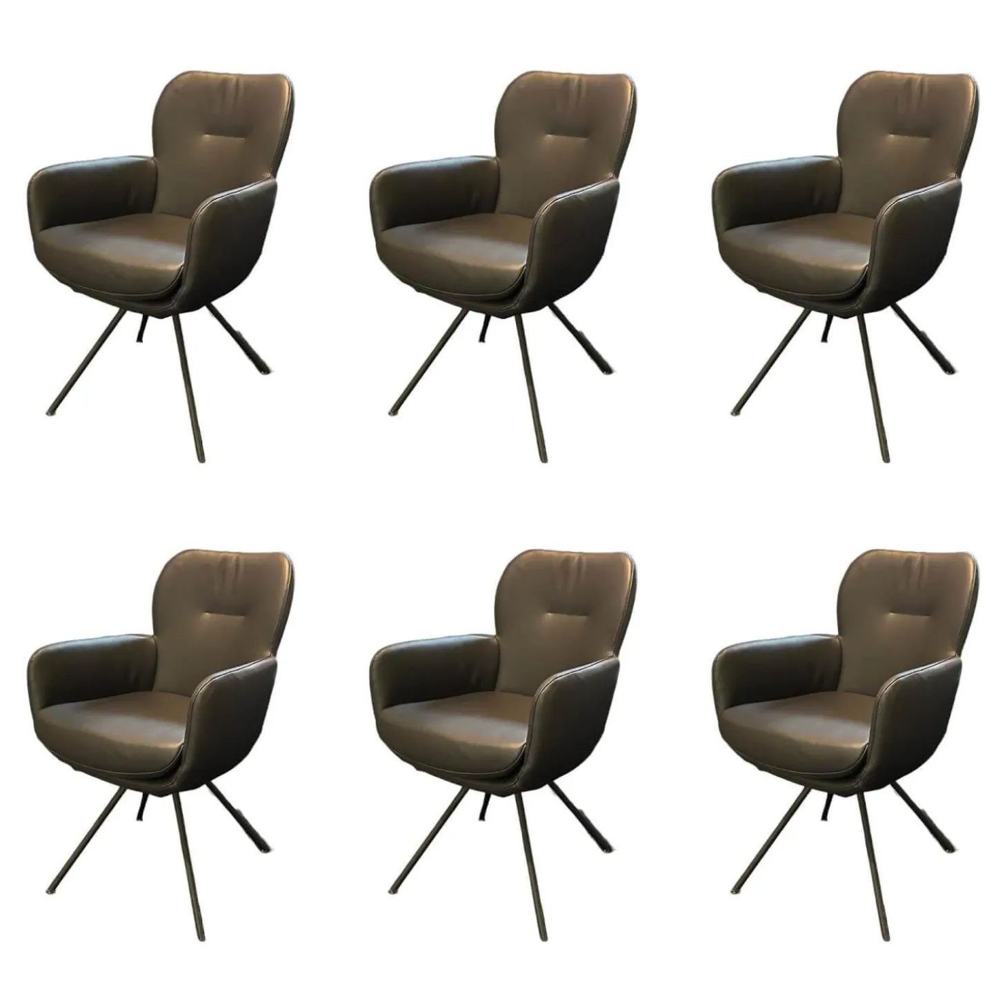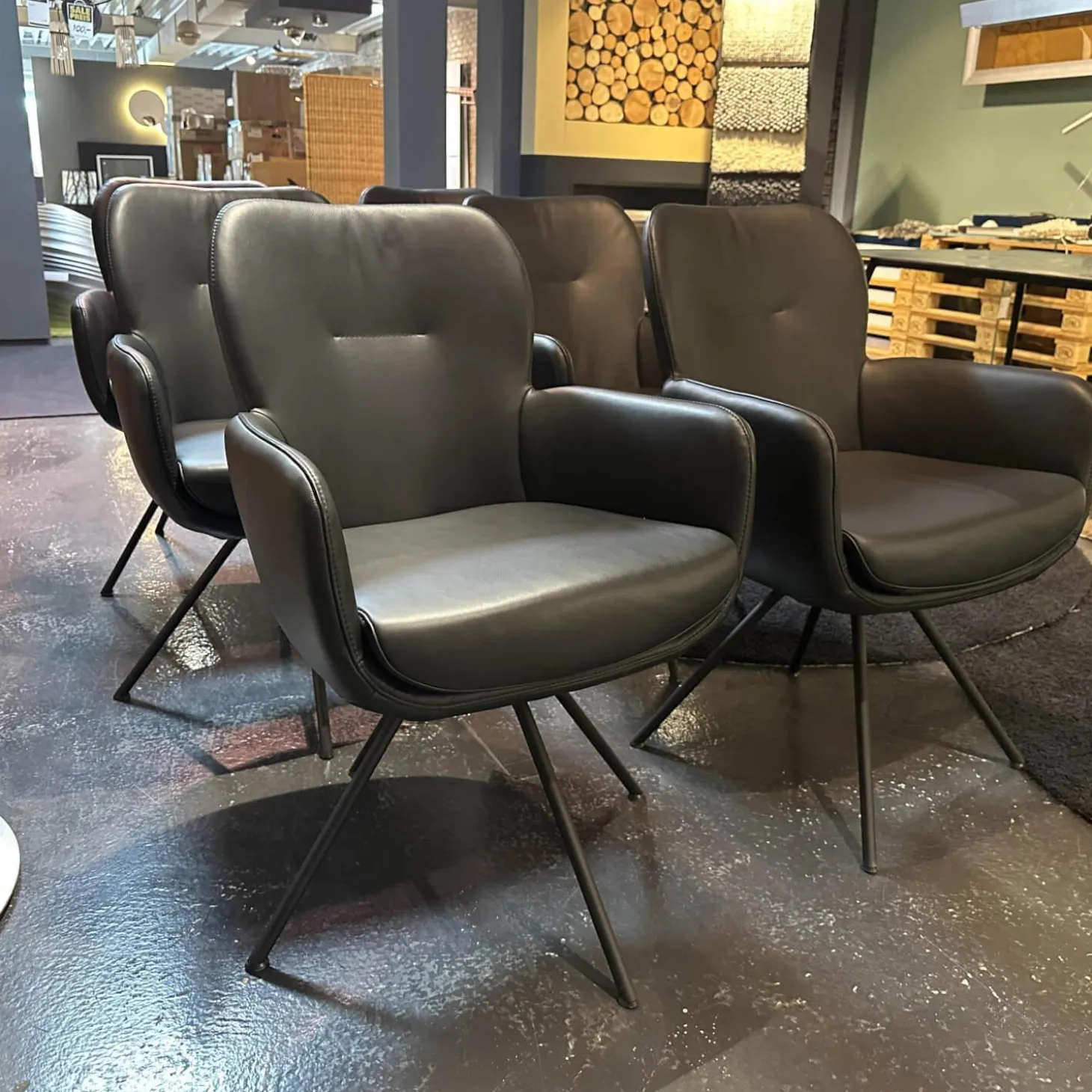 6er-Set Vierfußstuhl Leder Polo 1045 Schwarz Gestell Schwarz Drehbar Inklusive Filzgleiter