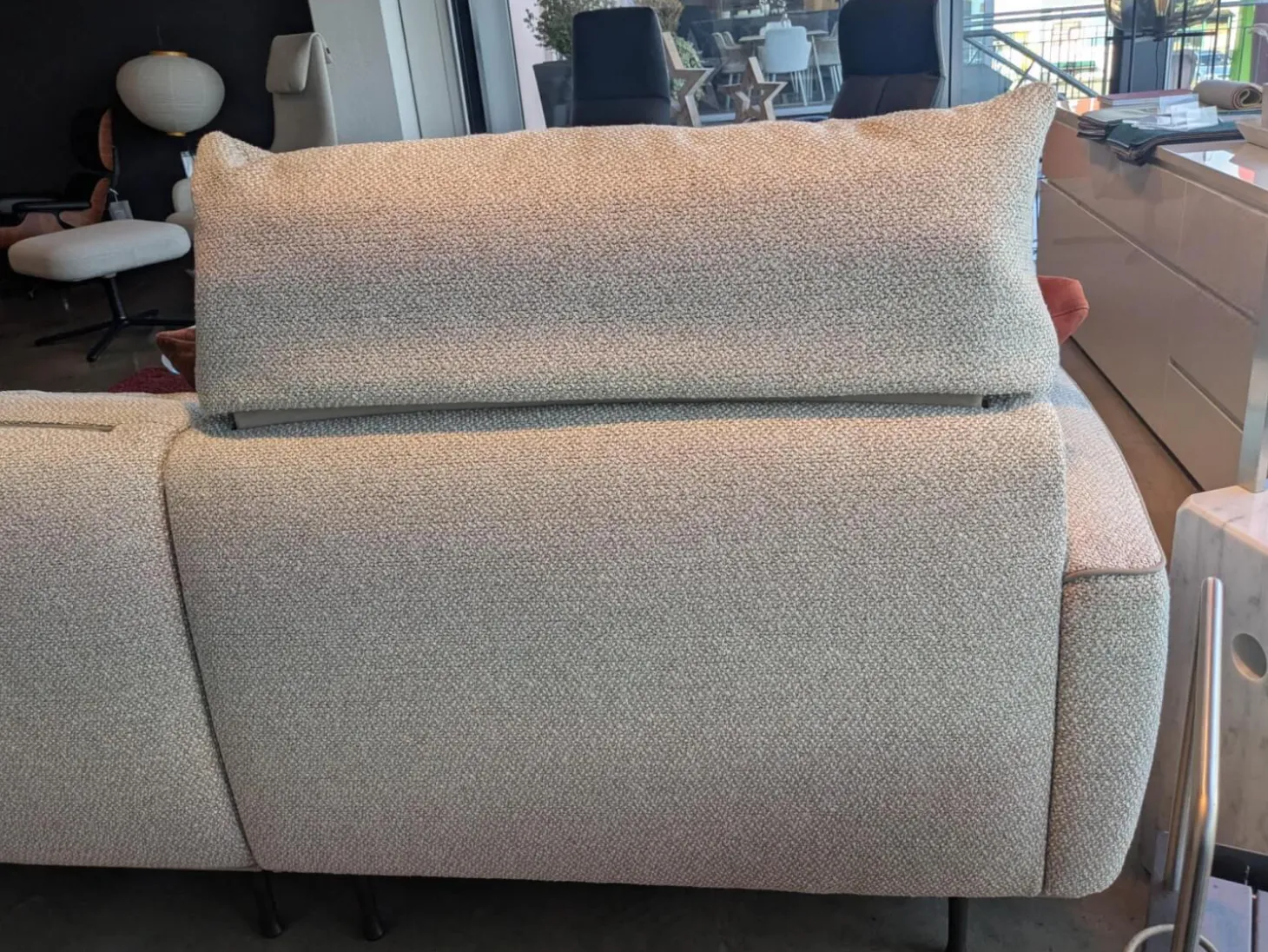 Ecksofa Eden Stoff Thuile C0002 Grau Creme Fuße Metall Bronze Schwarz Pulverbeschichtet Inklusive Hocker Und 3 Kissen
