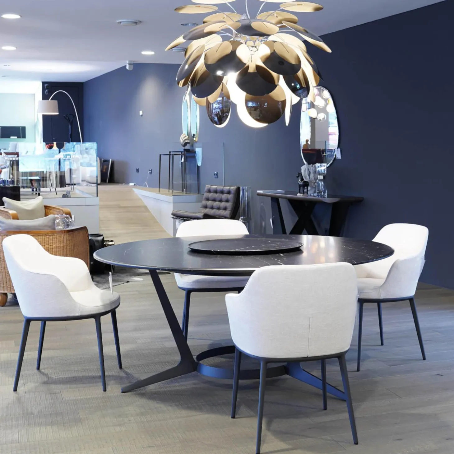 Essgruppe Tisch Astrum Marmor Maquinia Schwarz Matt mit 4 Stühlen Caratos