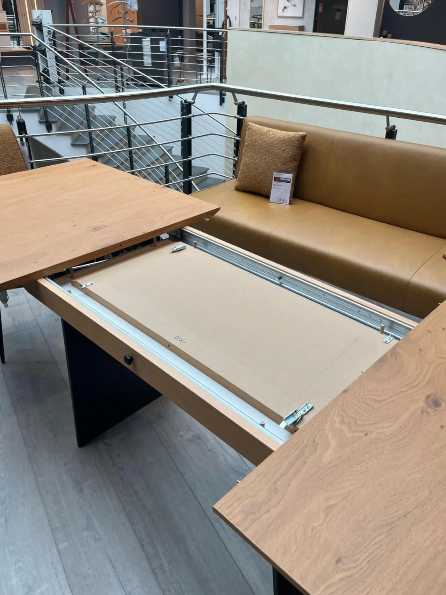 Funktionstisch Vari Platte Echtholzfurnier Asteiceh Natur Wangen MDF Schwarz Struktur Mit Synchronauszug