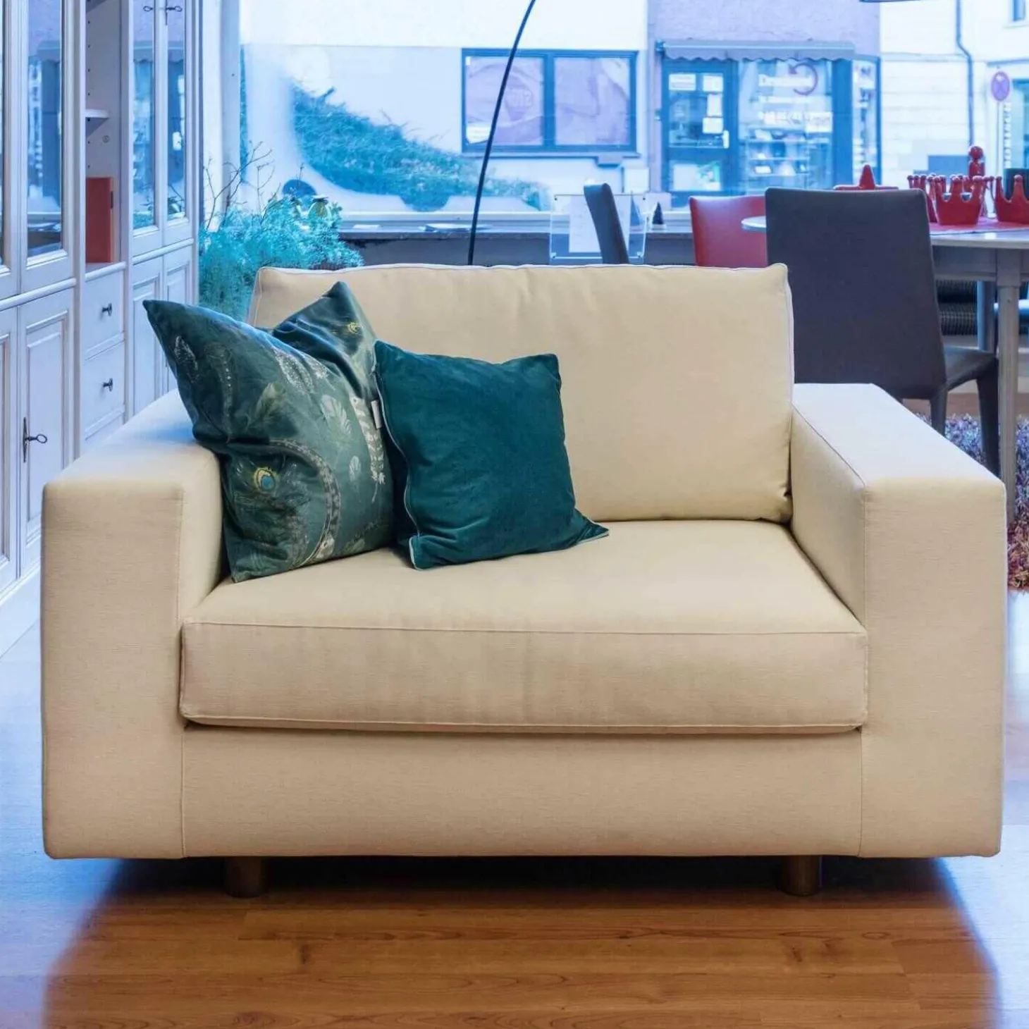 Genauer Zustand: Das Möbel hat als Ausstellungsstück in einem hochwertigen Einrichtungshaus eine gewisse Zeit verbracht.