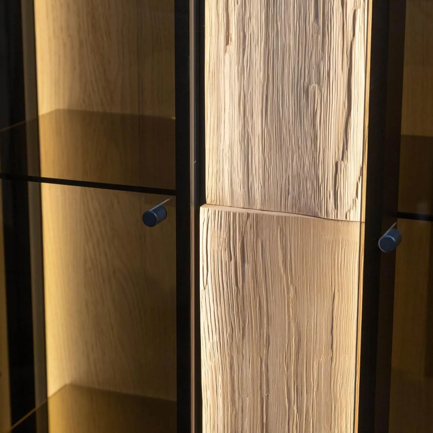 Highboard Kilva Kernesche Gebürstet Anthrazit Gebeizt Spaltholz Applikation Inklusive Beleuchtung