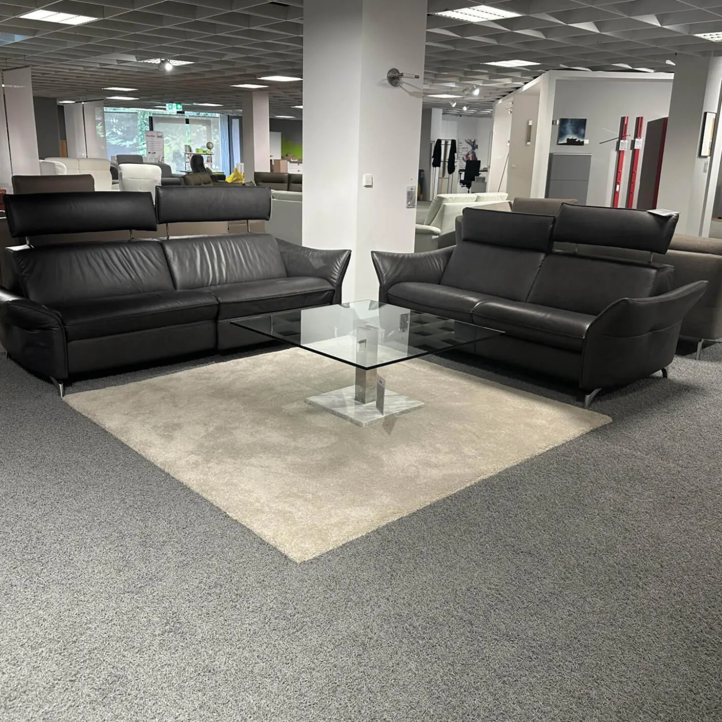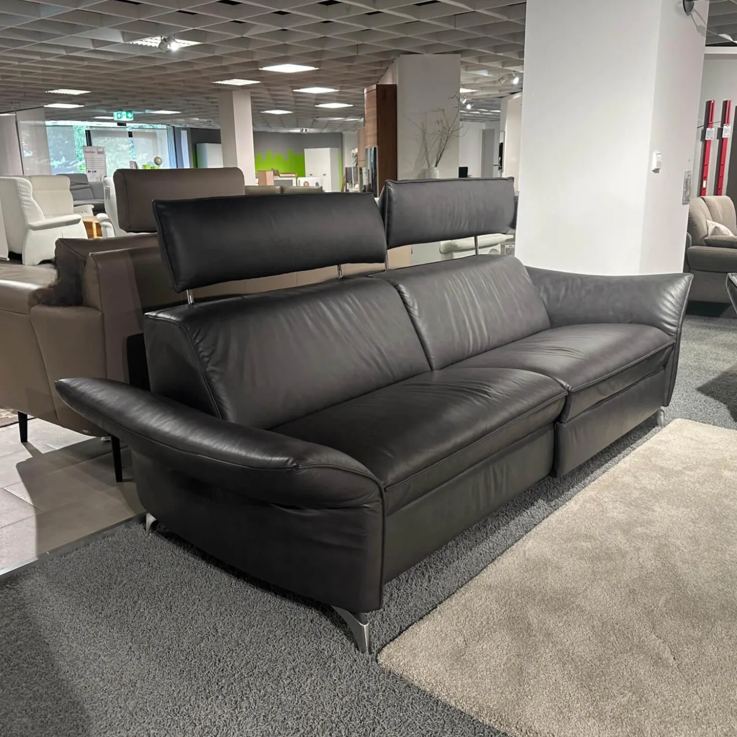 Polstergarnitur 1926 Leder 31 Longlife Moor Schwarz Braun Füße Metall 62 Edelstahloptik Gebürstet