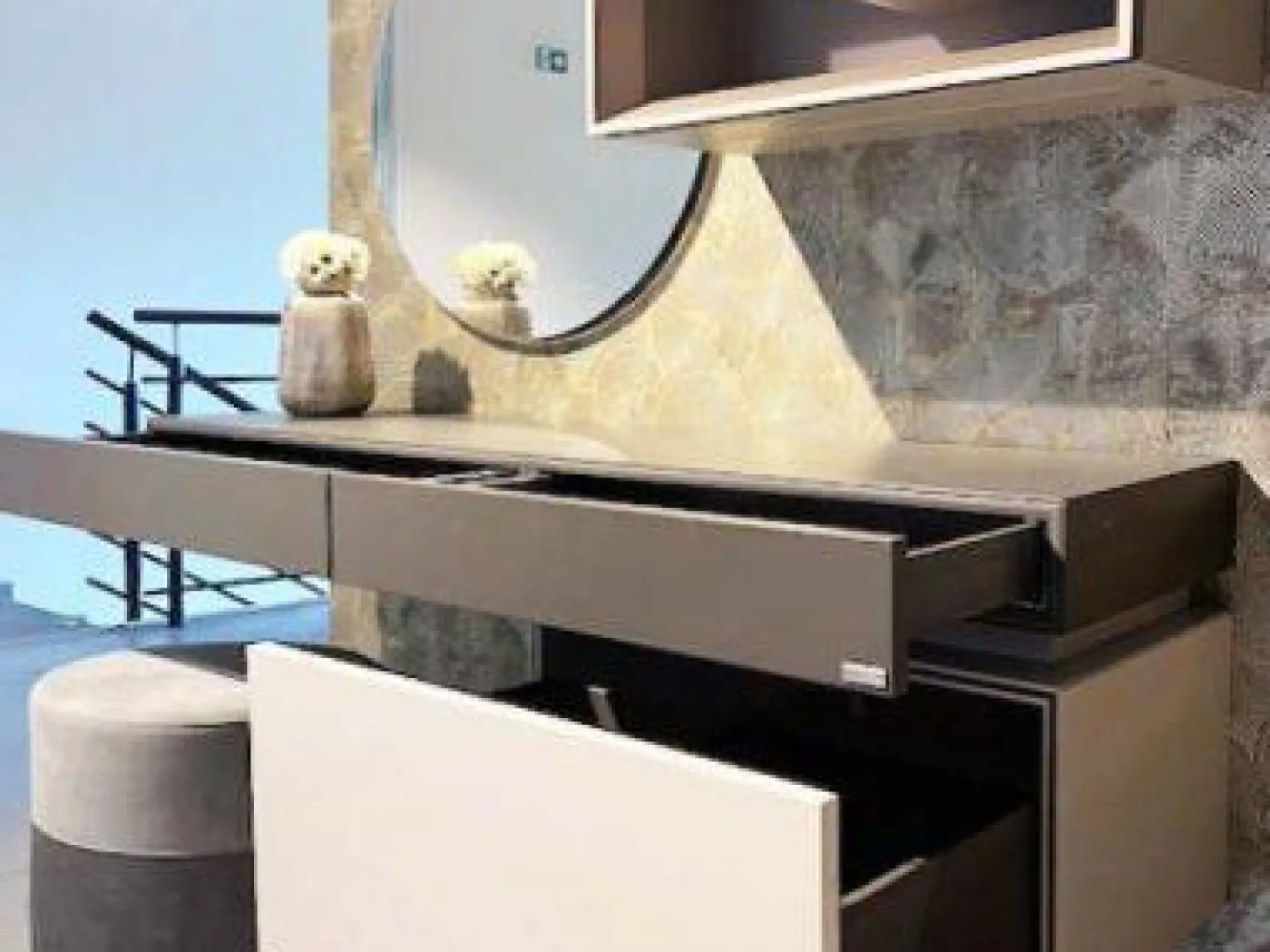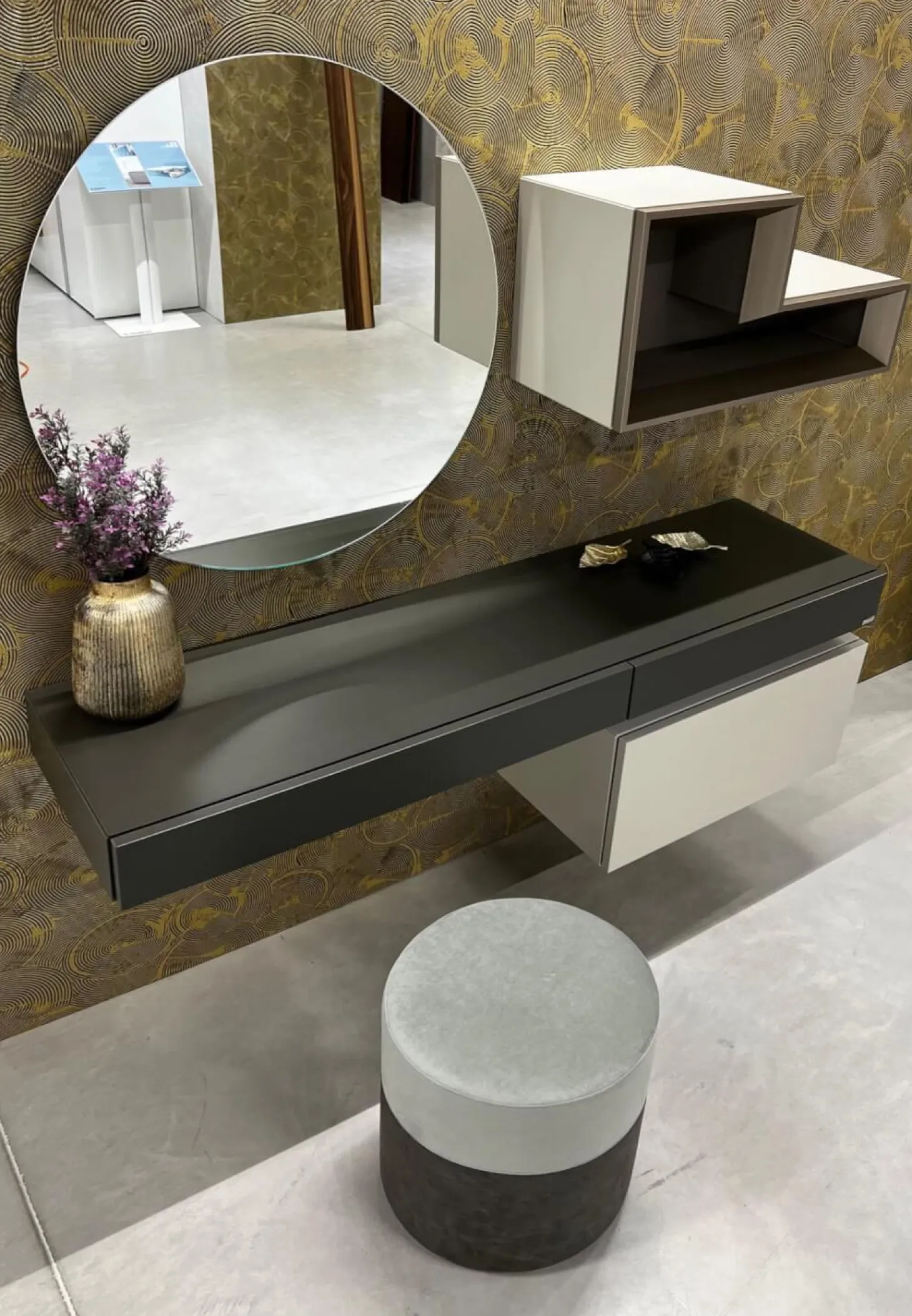 Schreibtisch Tetrim Lack Seidengrau Grau Inklusive Spiegel Und Beleuchtung