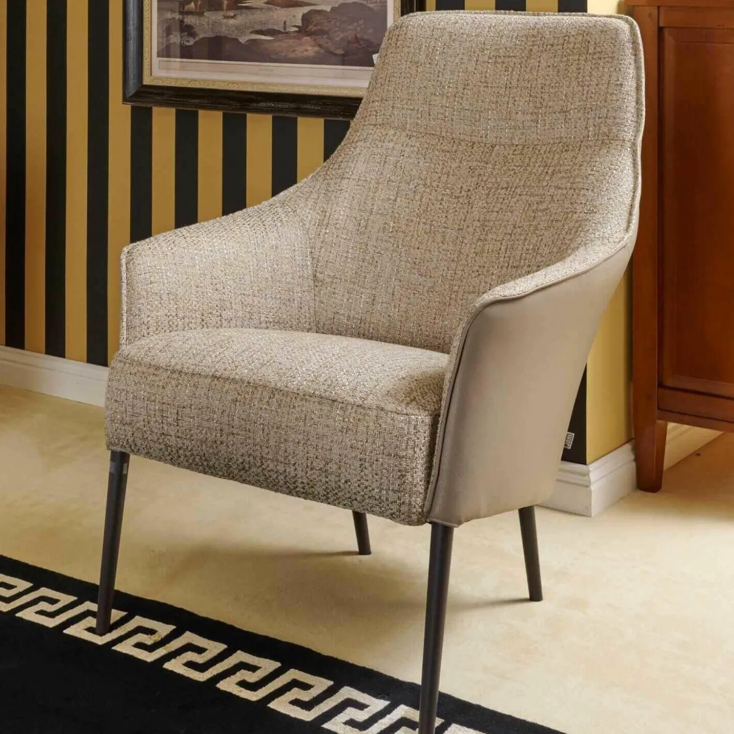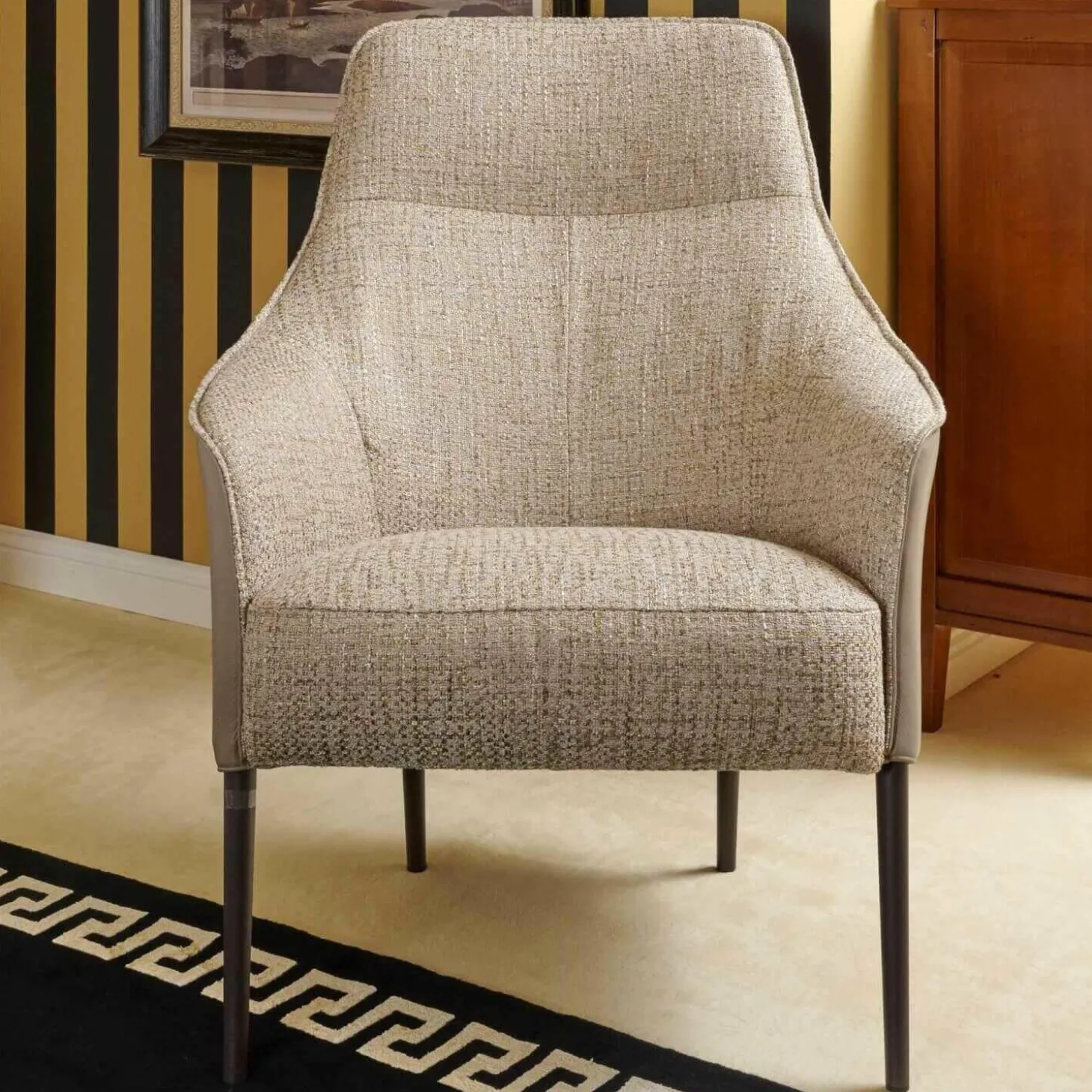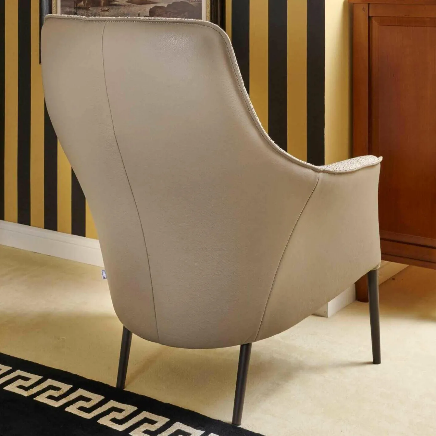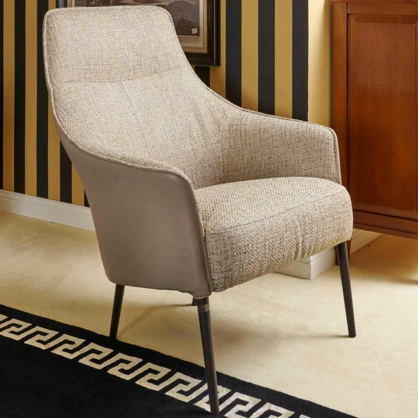 Sessel Fuga Hoch Bezug Innen Stoff James C0013 Außen Leder Lipano Taupe