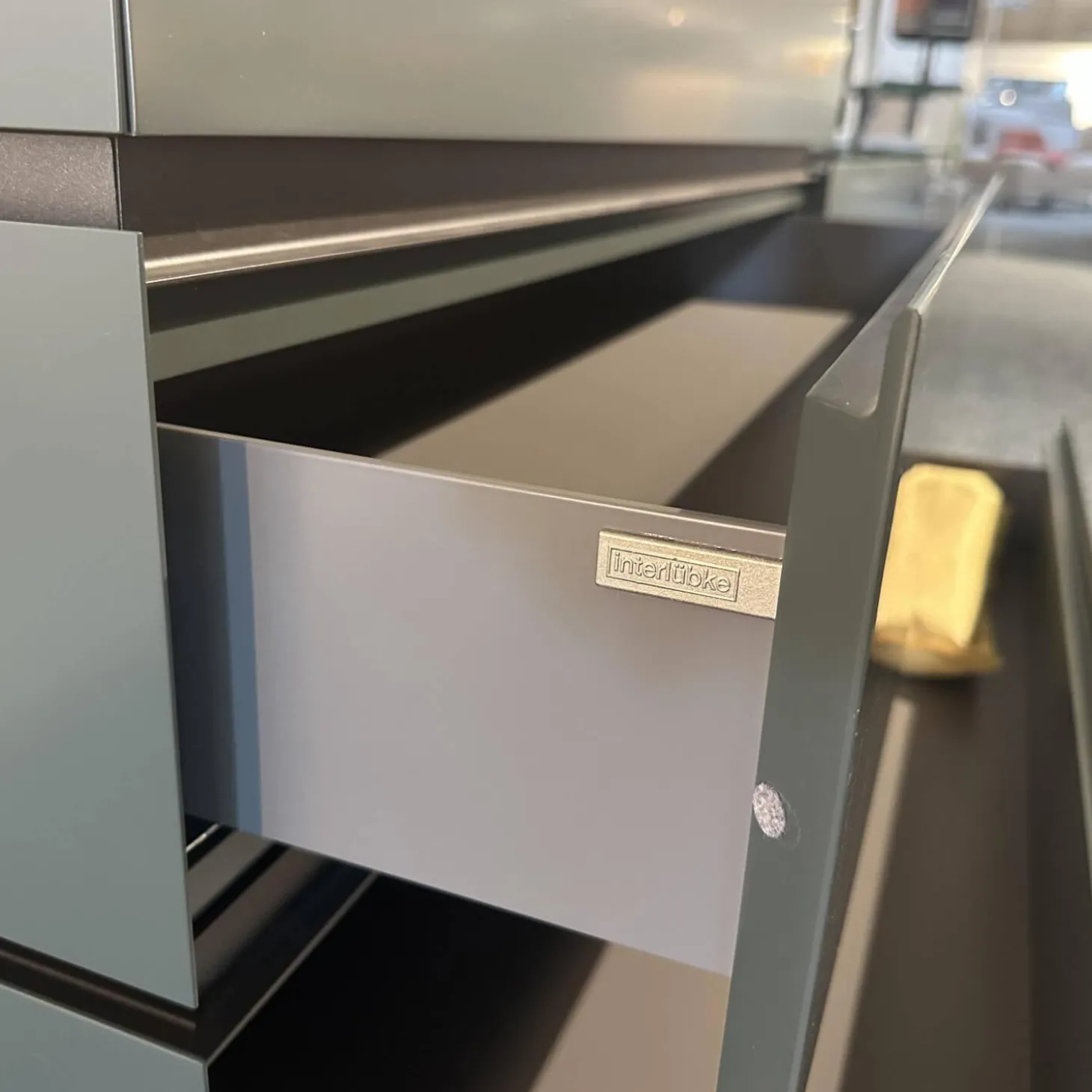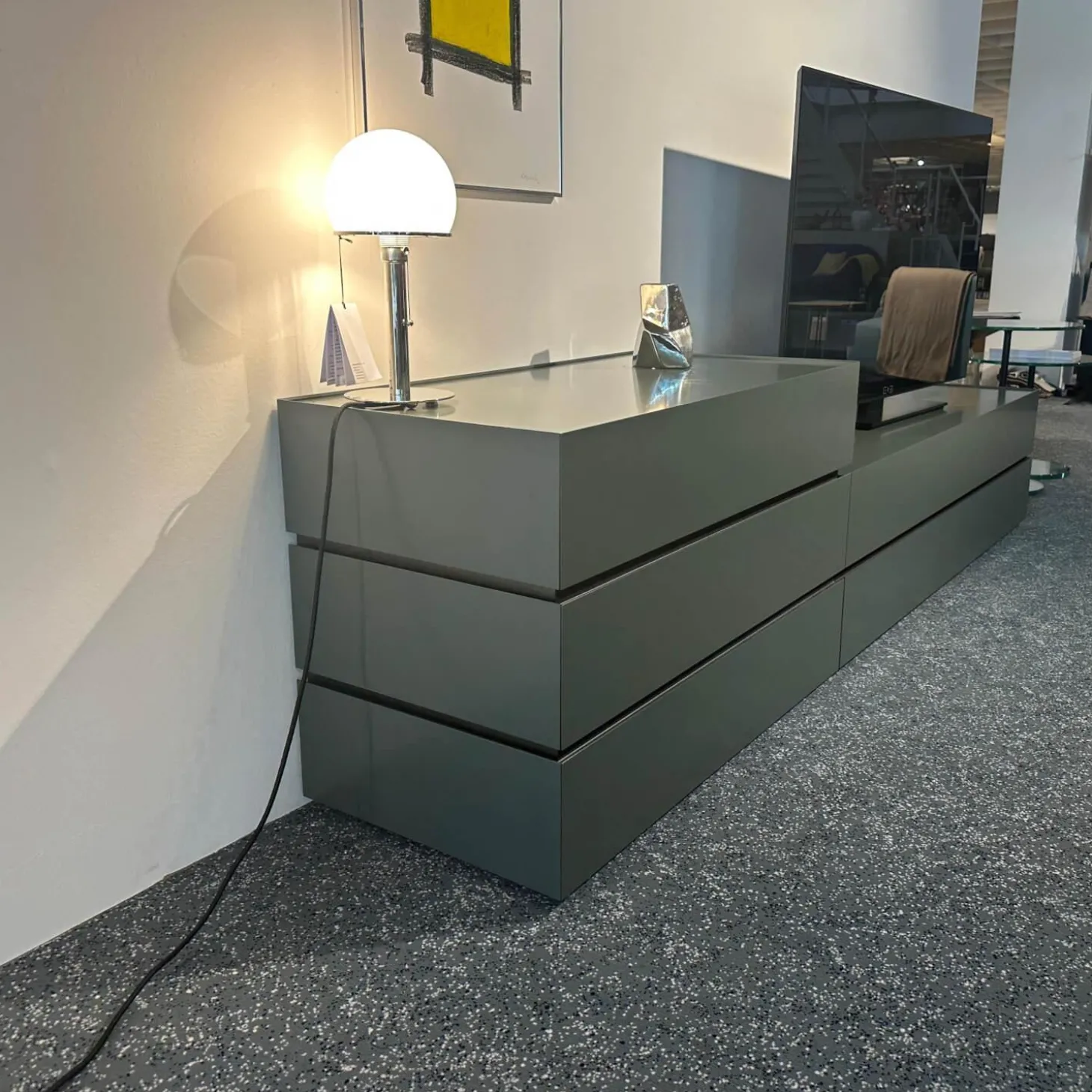 Sideboard Cube Bold Mattlack M81 Bahia Grau Grün Griffmulde 082 Brüniert