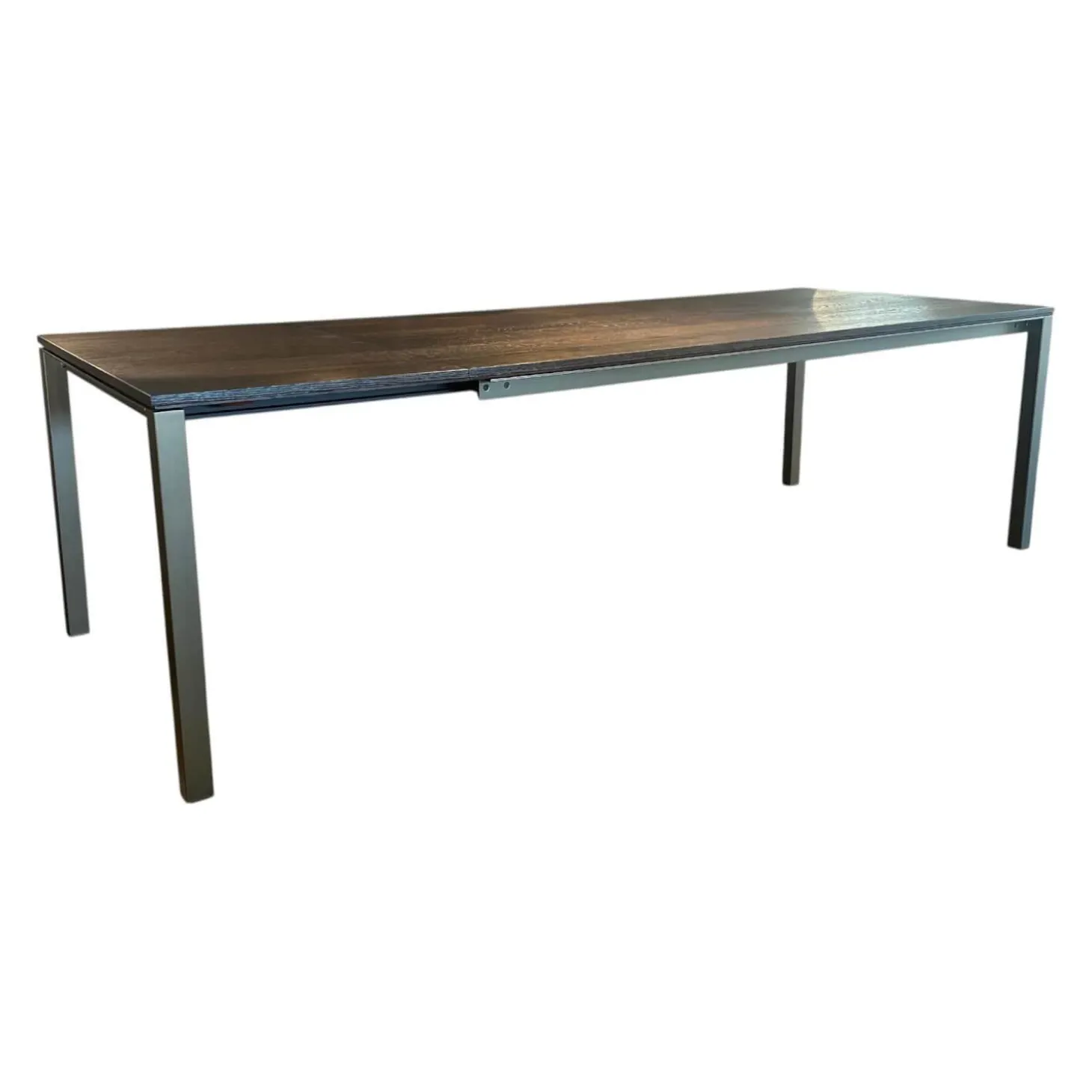Tisch S600 Platte Eiche Geräuchert Anthrazit Geölt Gebürstet Gestell Metall Stahllasur Bronze