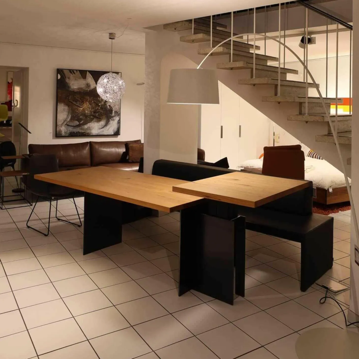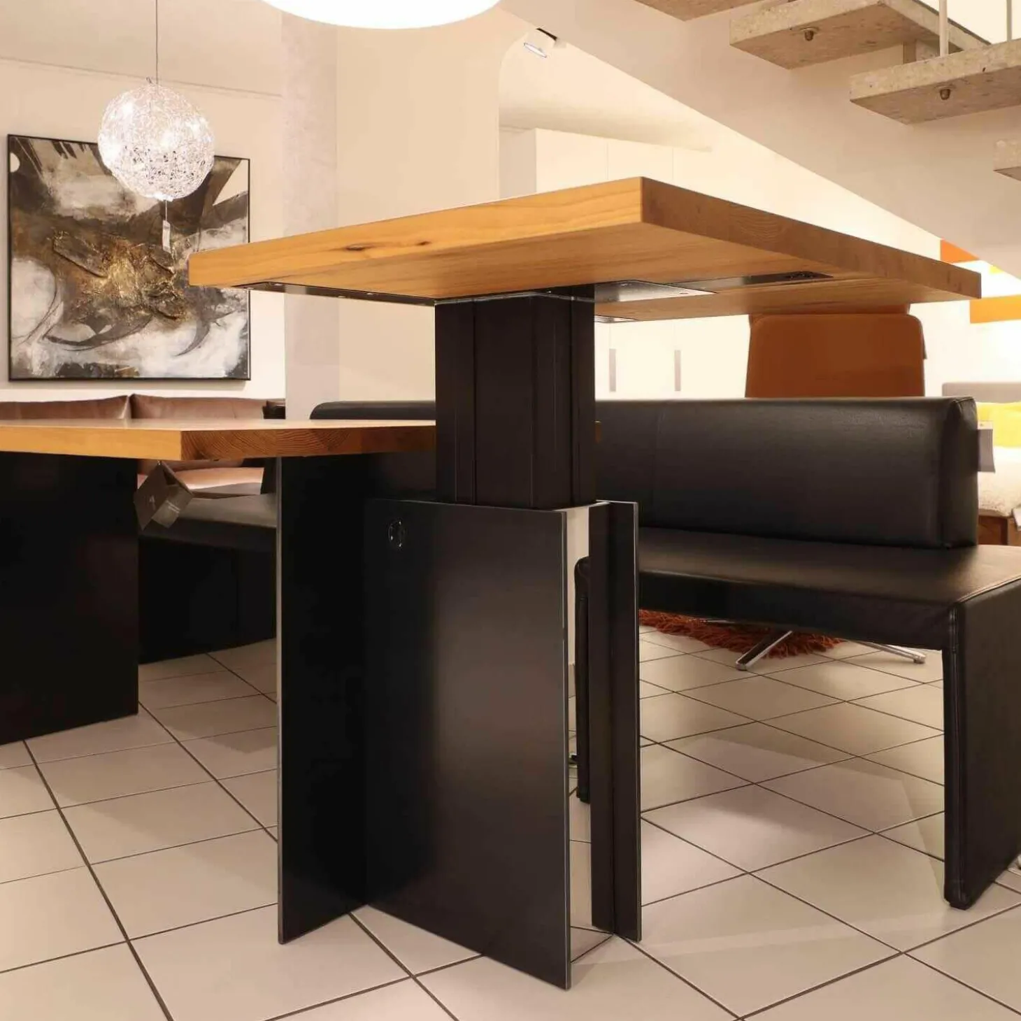 Tisch Tix eMotion Platte Ulme Massiv Naturart Mit Höhenverstellbarem Ansatztisch