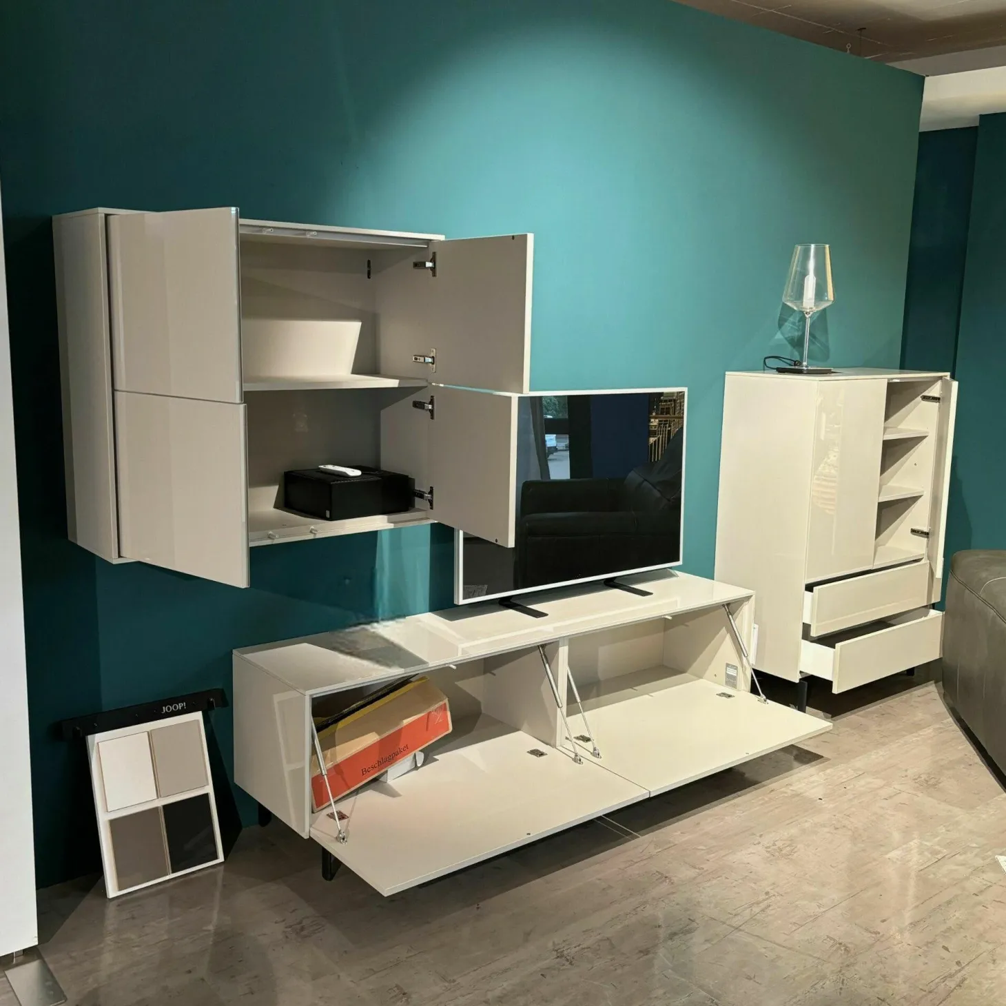 Lieferumfang: 1 Wohnkmbo bestehend aus 1x Hängeschrank, 1x Lowboard, 1 x Highboard