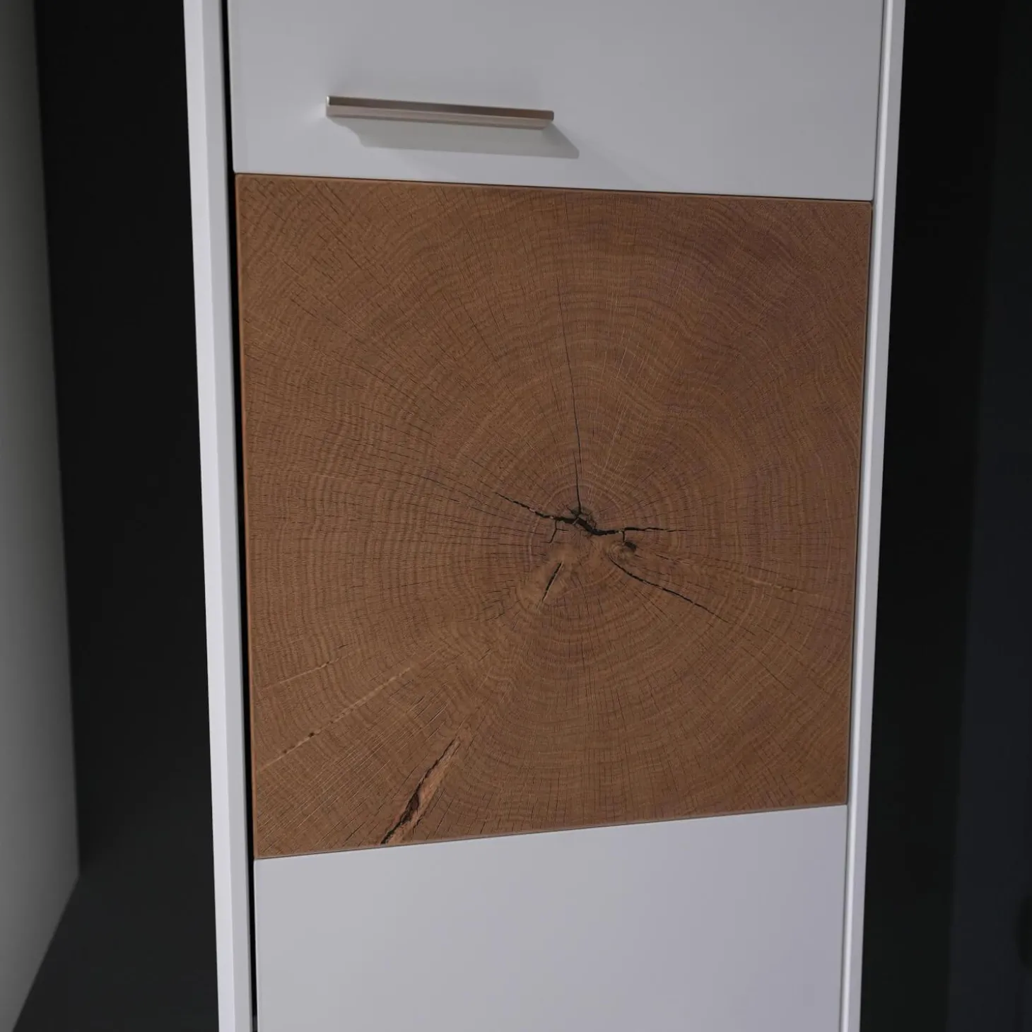 Wohnwand 2102 Mit Sideboard Und 2 Hängevitrinen Mattlack Weiß Matt Asteiche Hell Furniert