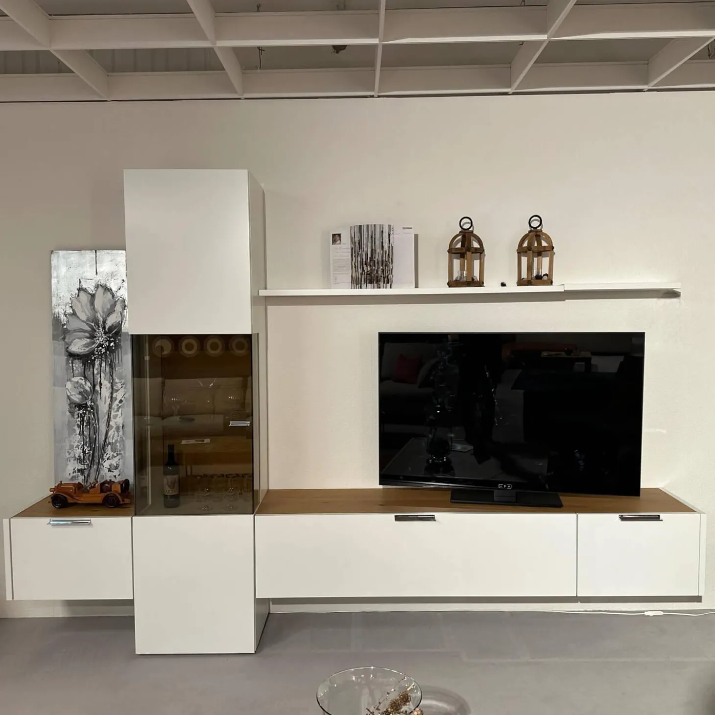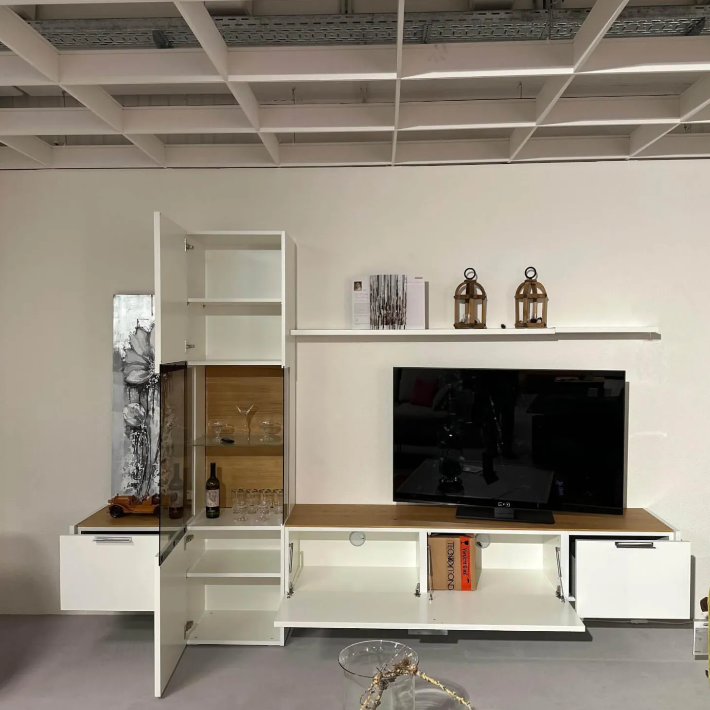 Höhe: Gesamt: 213 Lowboard: 36.6 Vitrine: 213 Wandsteckbord: 2.9 cm