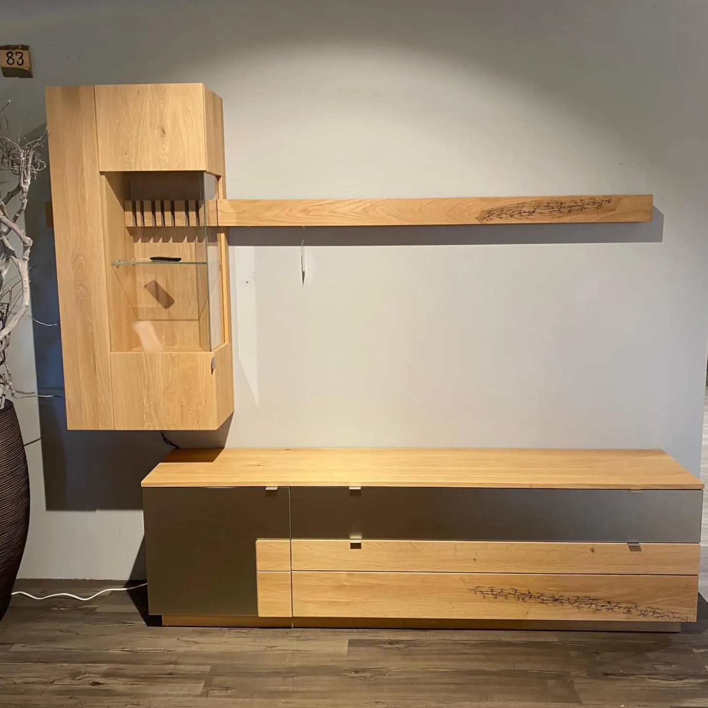 Breite: Gesamt: 257, Lowboard: 202, Vitrine: 55, Wandboard: 164,5 cm