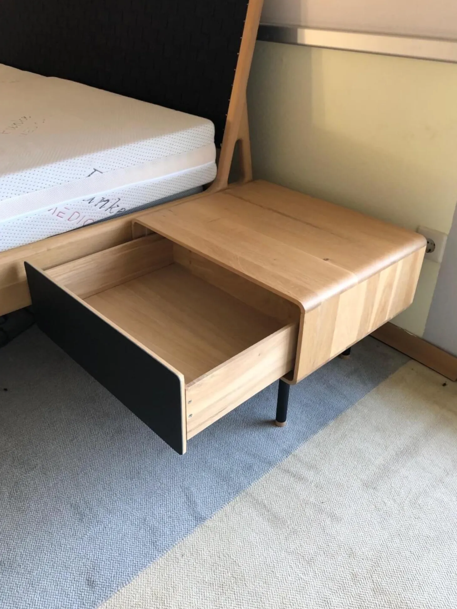 Lieferumfang: 1 Bett, 2 Nachttische, ohne Lattenrost, ohne Matratzen