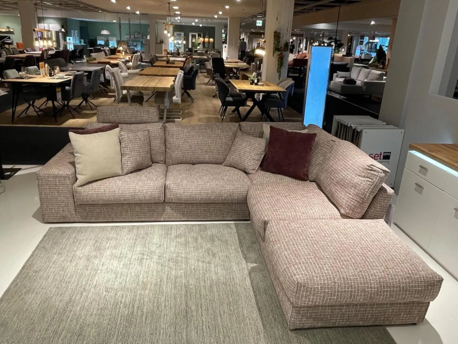 Lieferumfang: 1 Eckgarnitur, 6 Kissen
