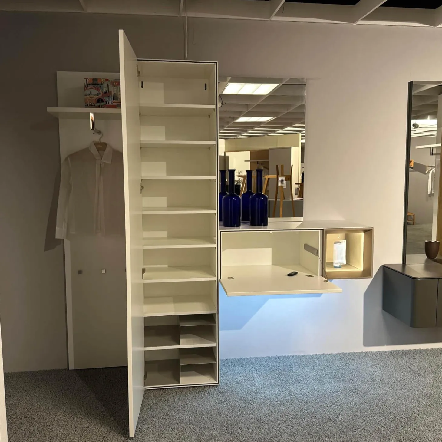 Tiefe: Garderobenpaneel: 35 Element mit Tür: 45 Element mit Klappe: 45 Spiegel: 3.8 cm