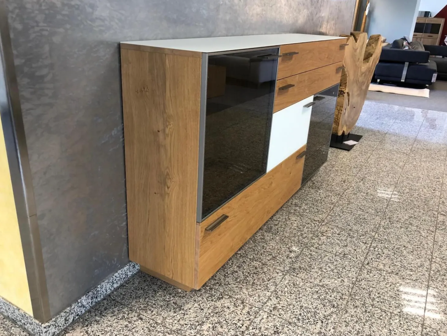 Genauer Zustand: Das Möbel hat als Ausstellungsstück in einem hochwertigen Einrichtungshaus eine gewisse Zeit verbracht. Seien Sie unbesorgt: Unser Expertenteam prüft jeden Artikel vor Versand noch einmal auf Zustand und Funktion. Sollten wir etwas finden, geben wir Ihnen Bescheid.