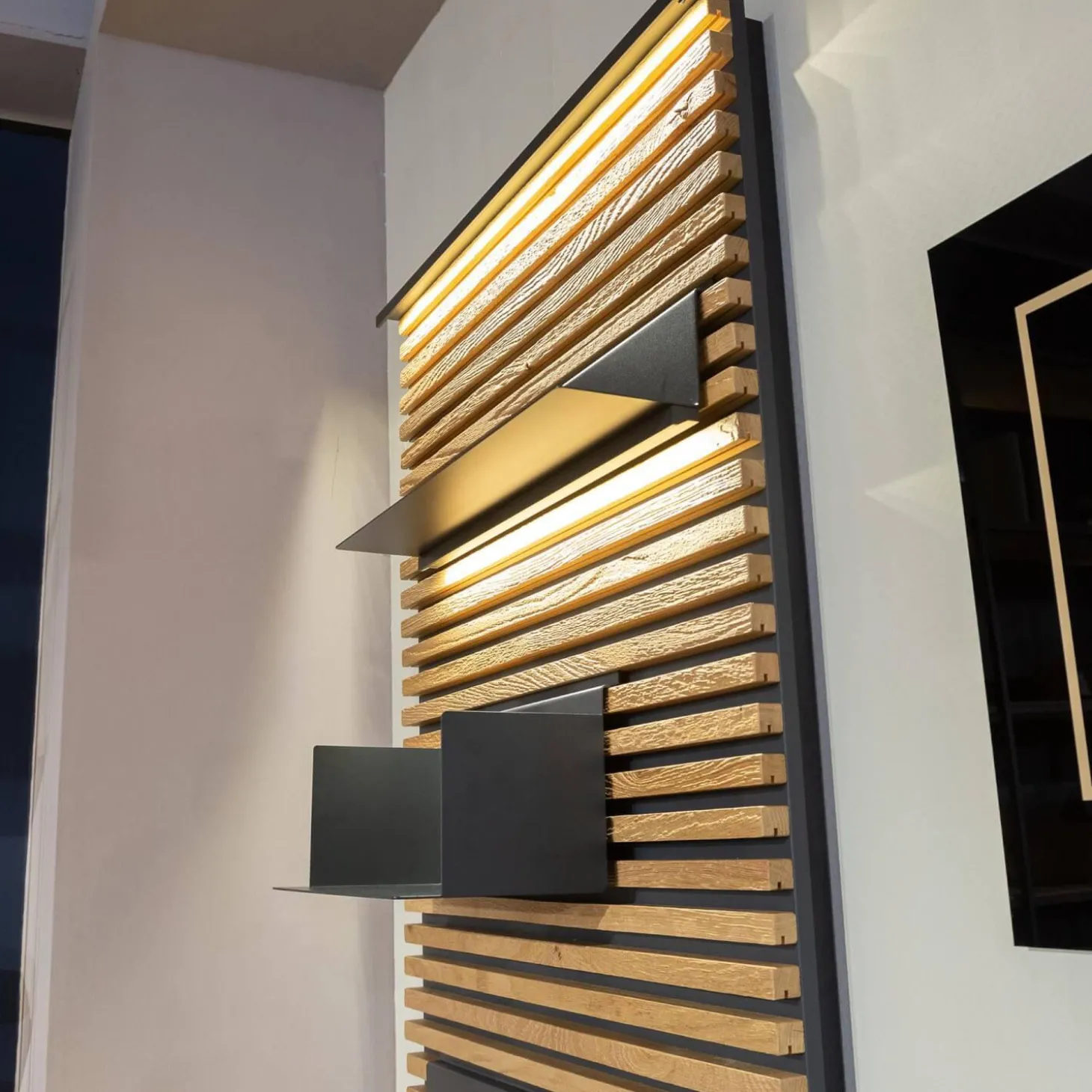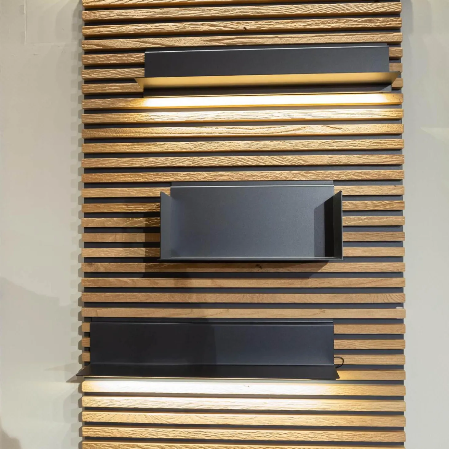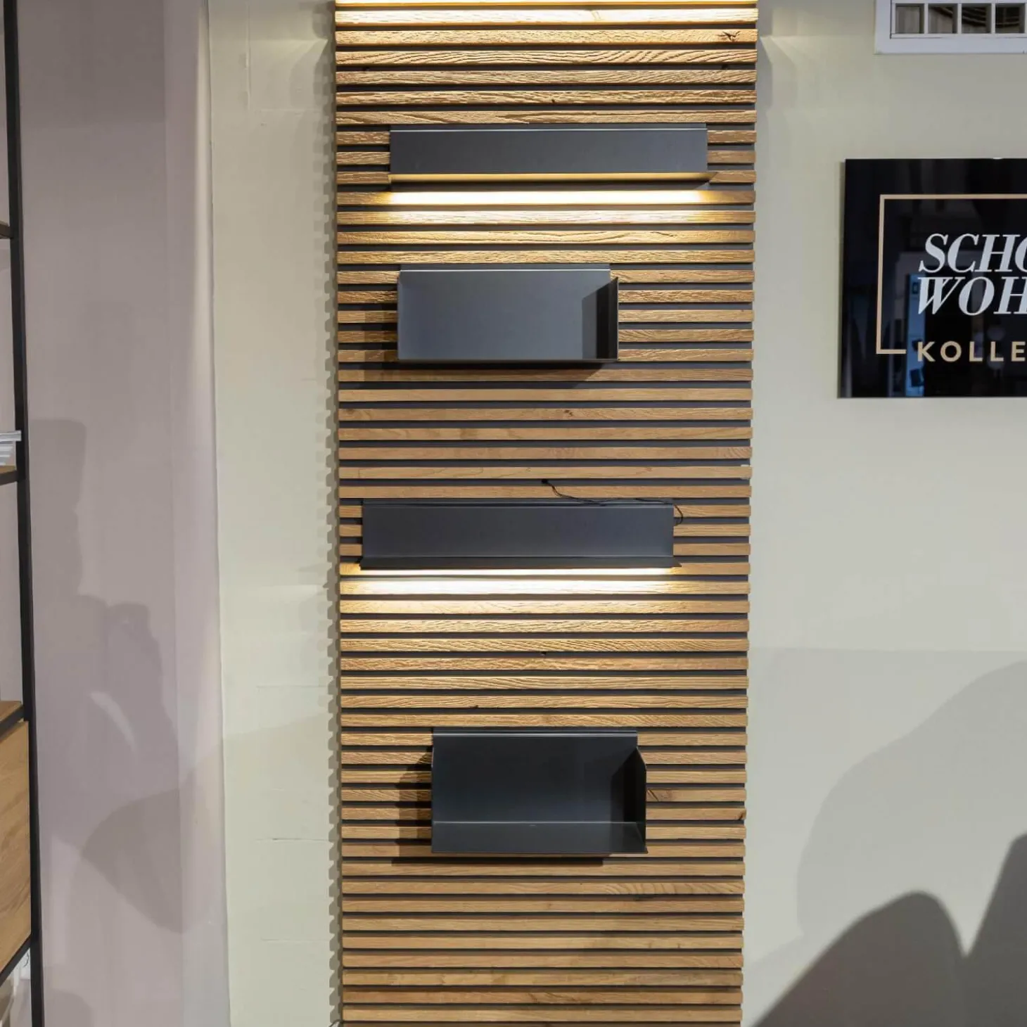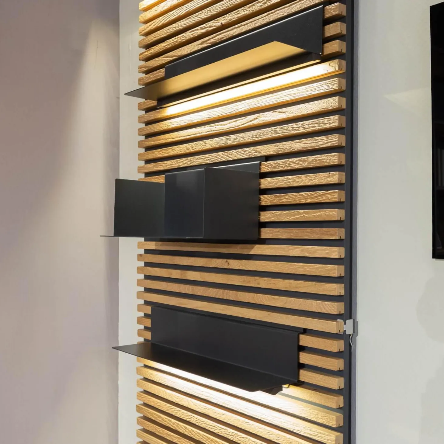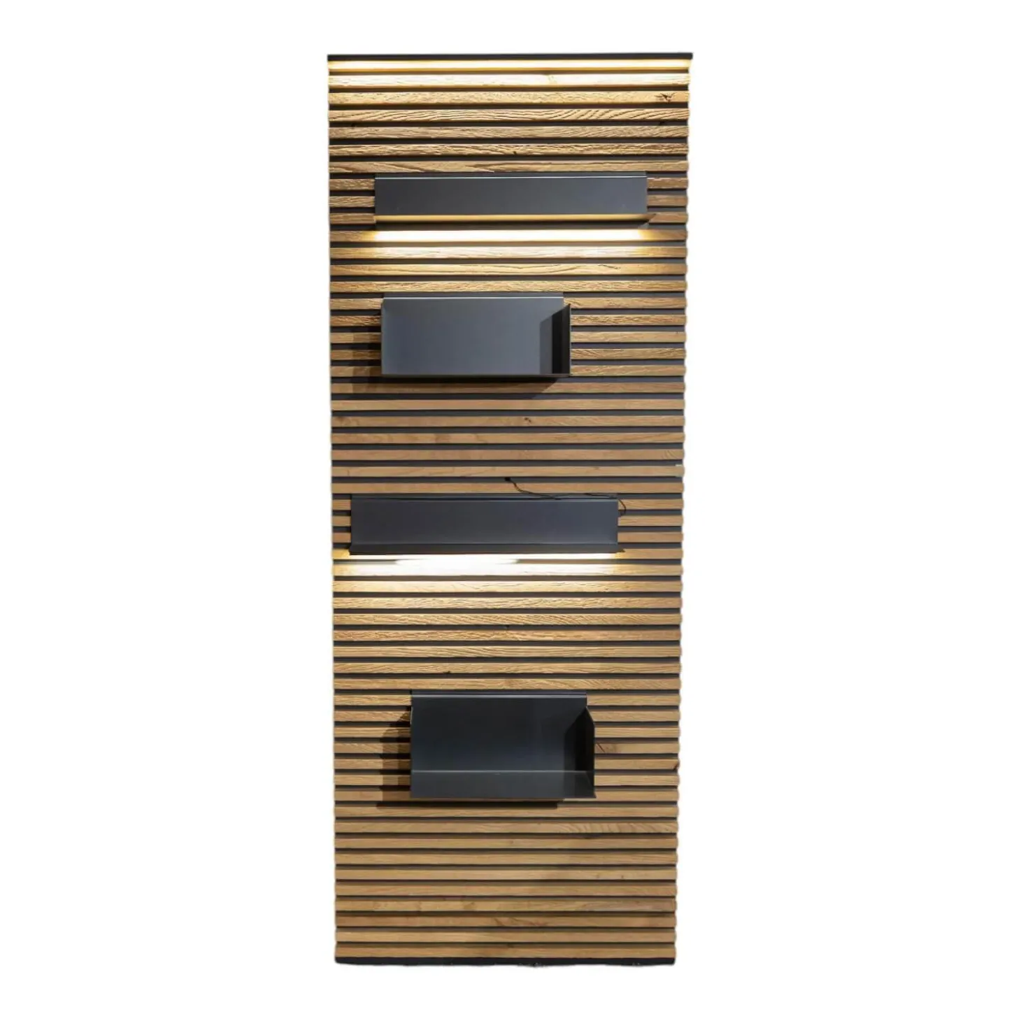 Lieferumfang: 1x Lamellenpaneele mit 4 variabel einsetzbaren Regalböden