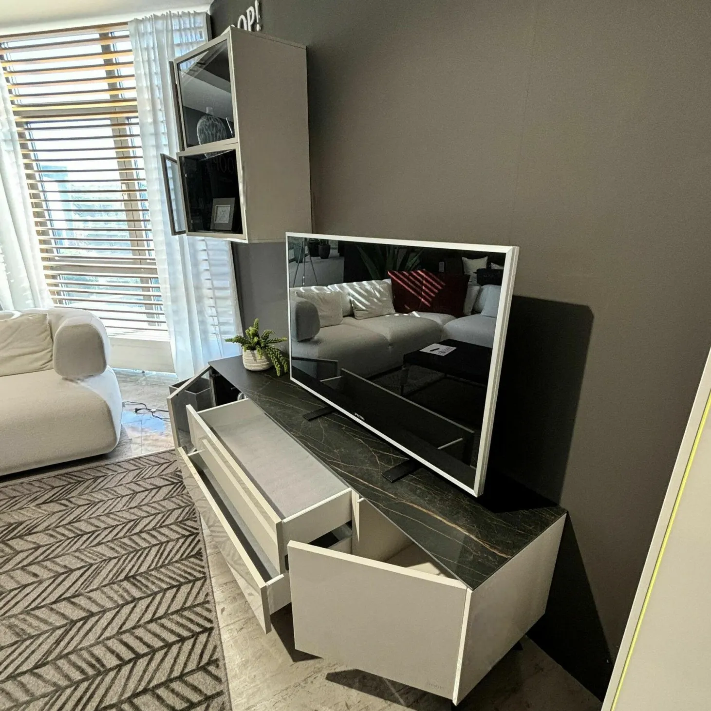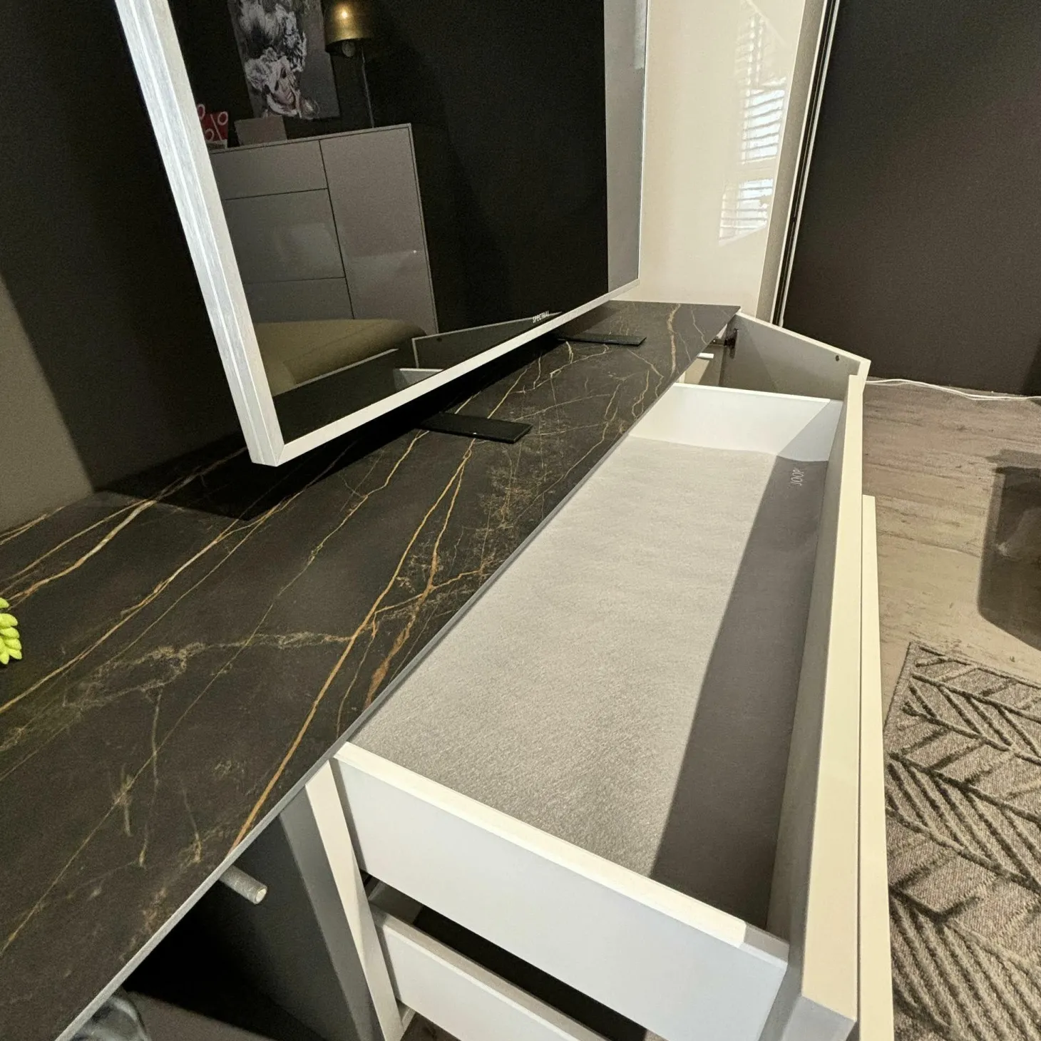 Genauer Zustand: Das Möbel hat als Ausstellungsstück in einem hochwertigen Einrichtungshaus eine gewisse Zeit verbracht.