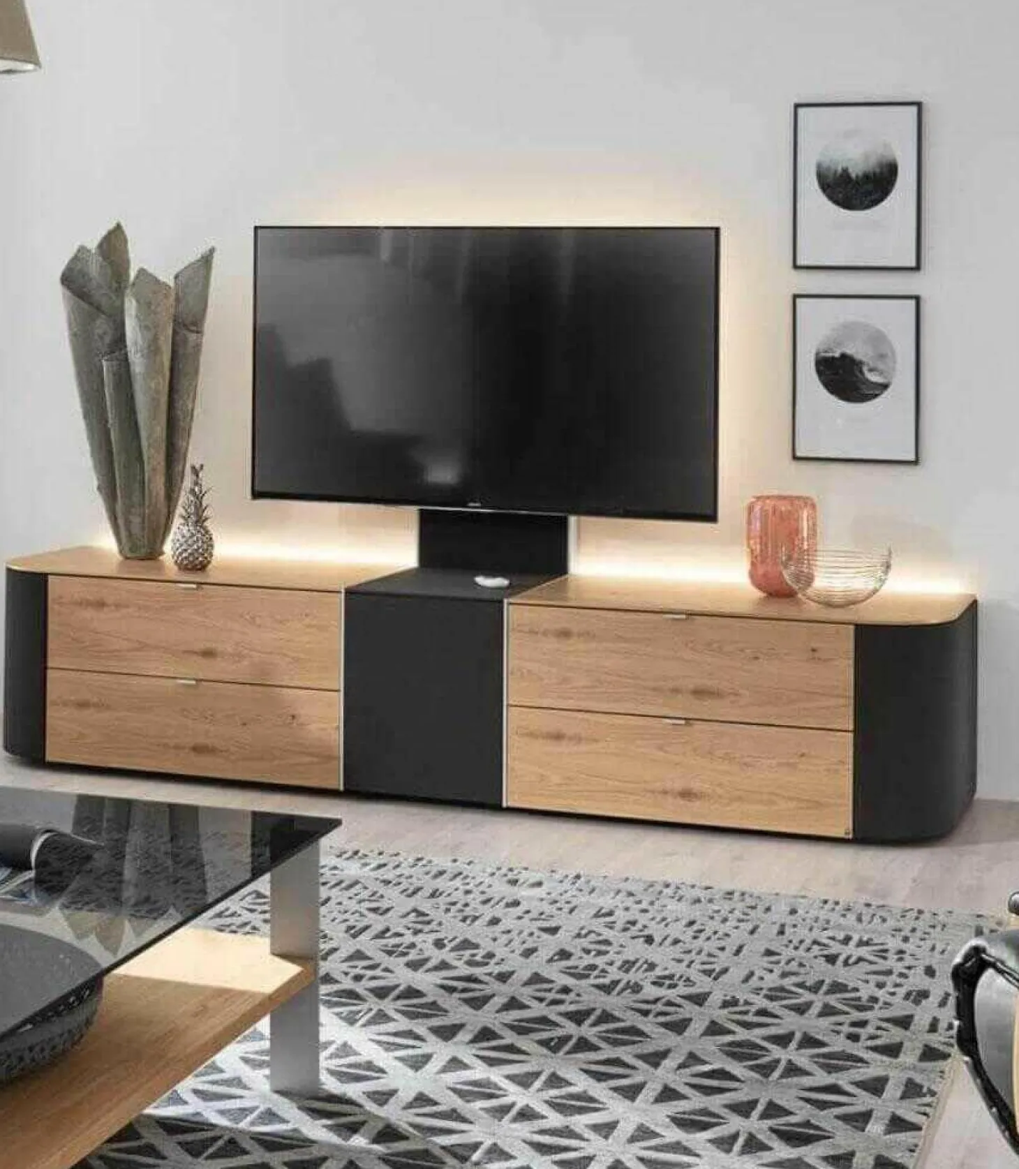 Farbbezeichnung des Herstellers: Balkeneiche bianco furniert, anthrazit