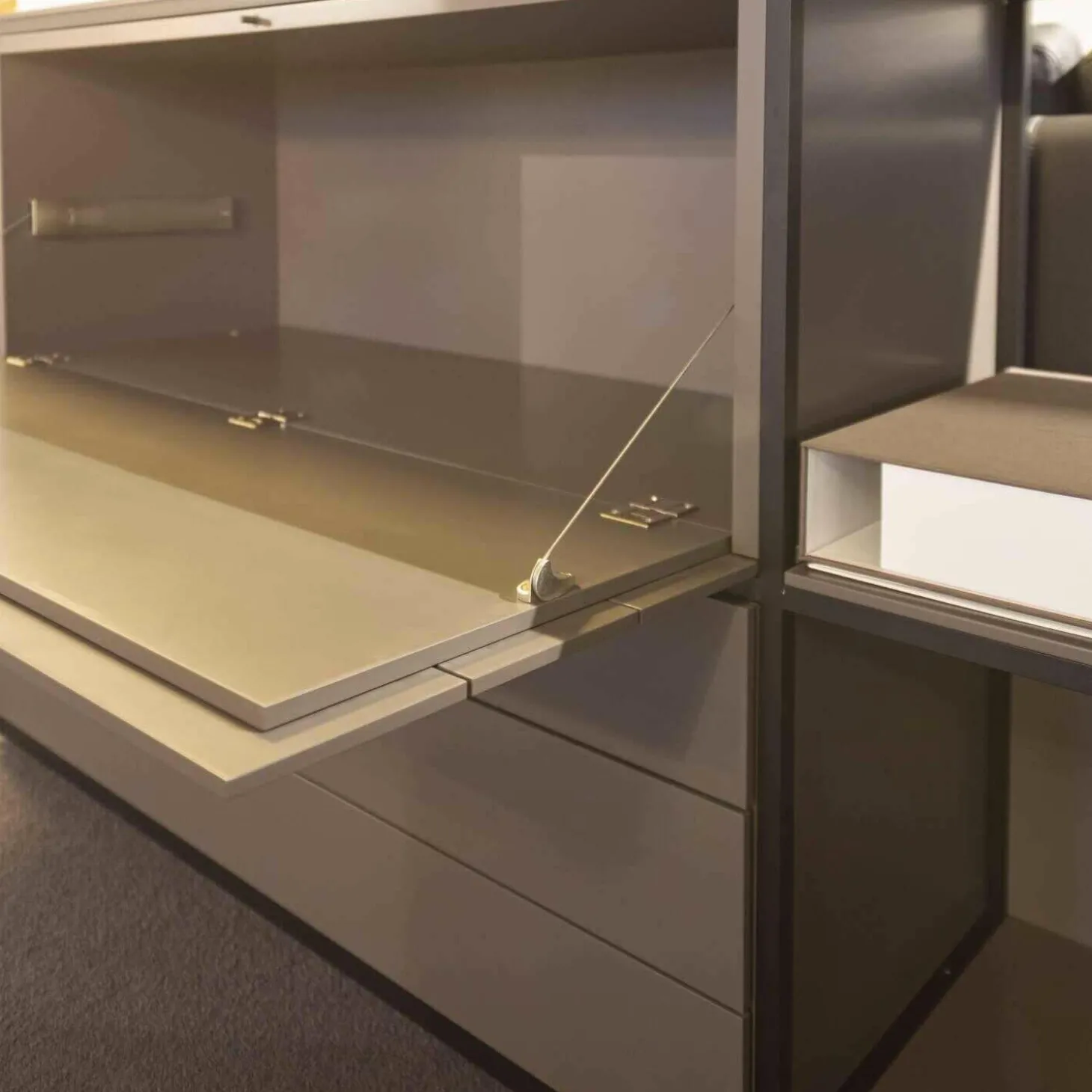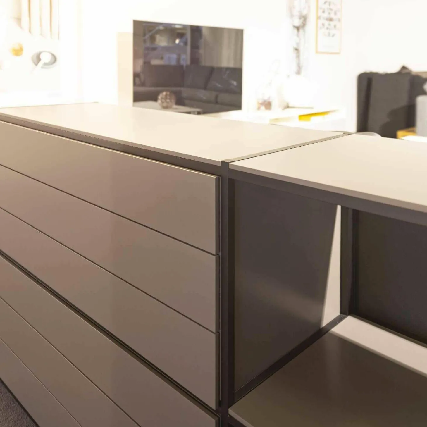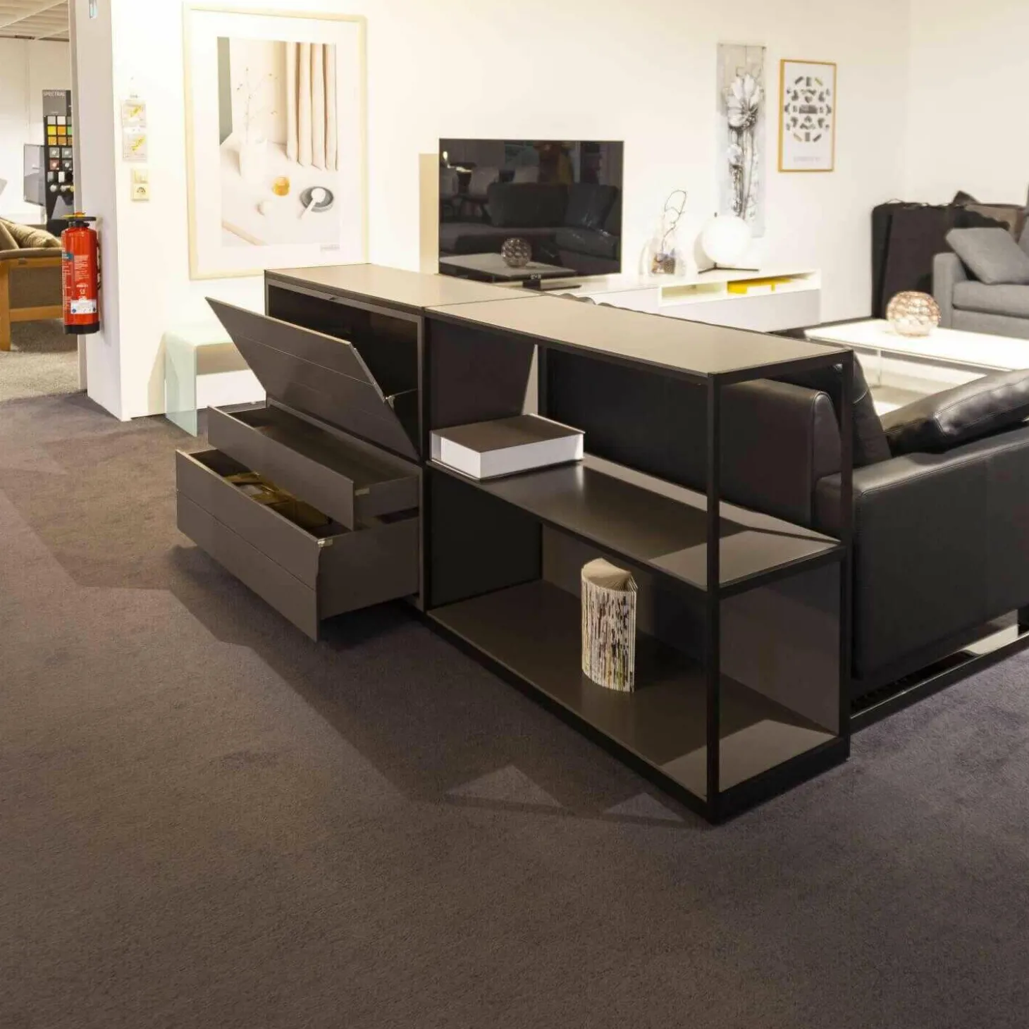 Genauer Zustand: Das Möbel hat als Ausstellungsstück in einem hochwertigen Einrichtungshaus eine gewisse Zeit verbracht.