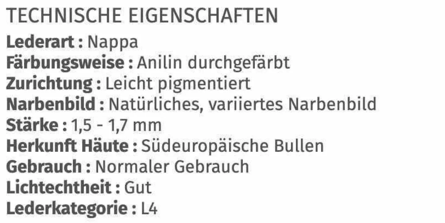 Zusammensetzung: 1,5 – 1,7 mm, Nappaleder