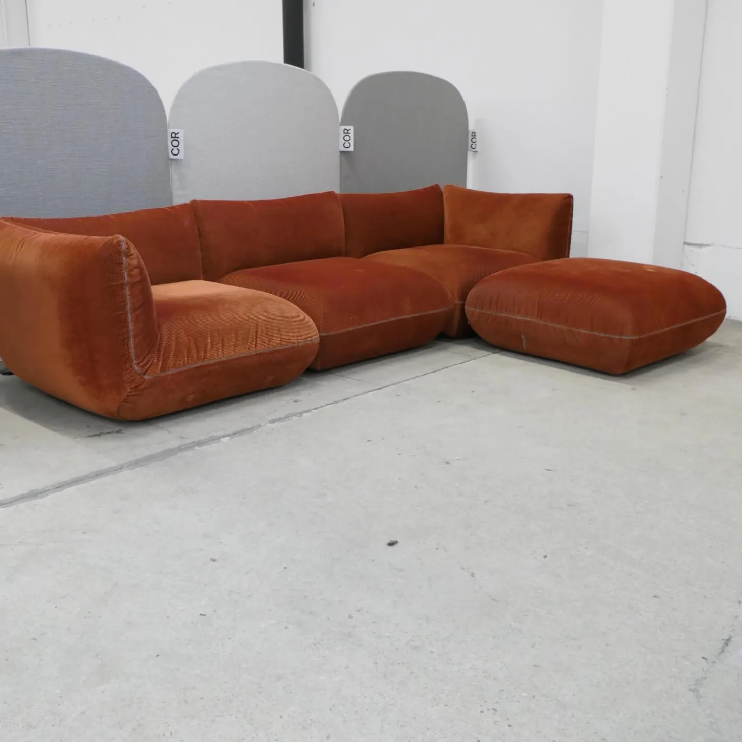 Lieferumfang: 1 Sofa (3 Elemente), 1 Hocker