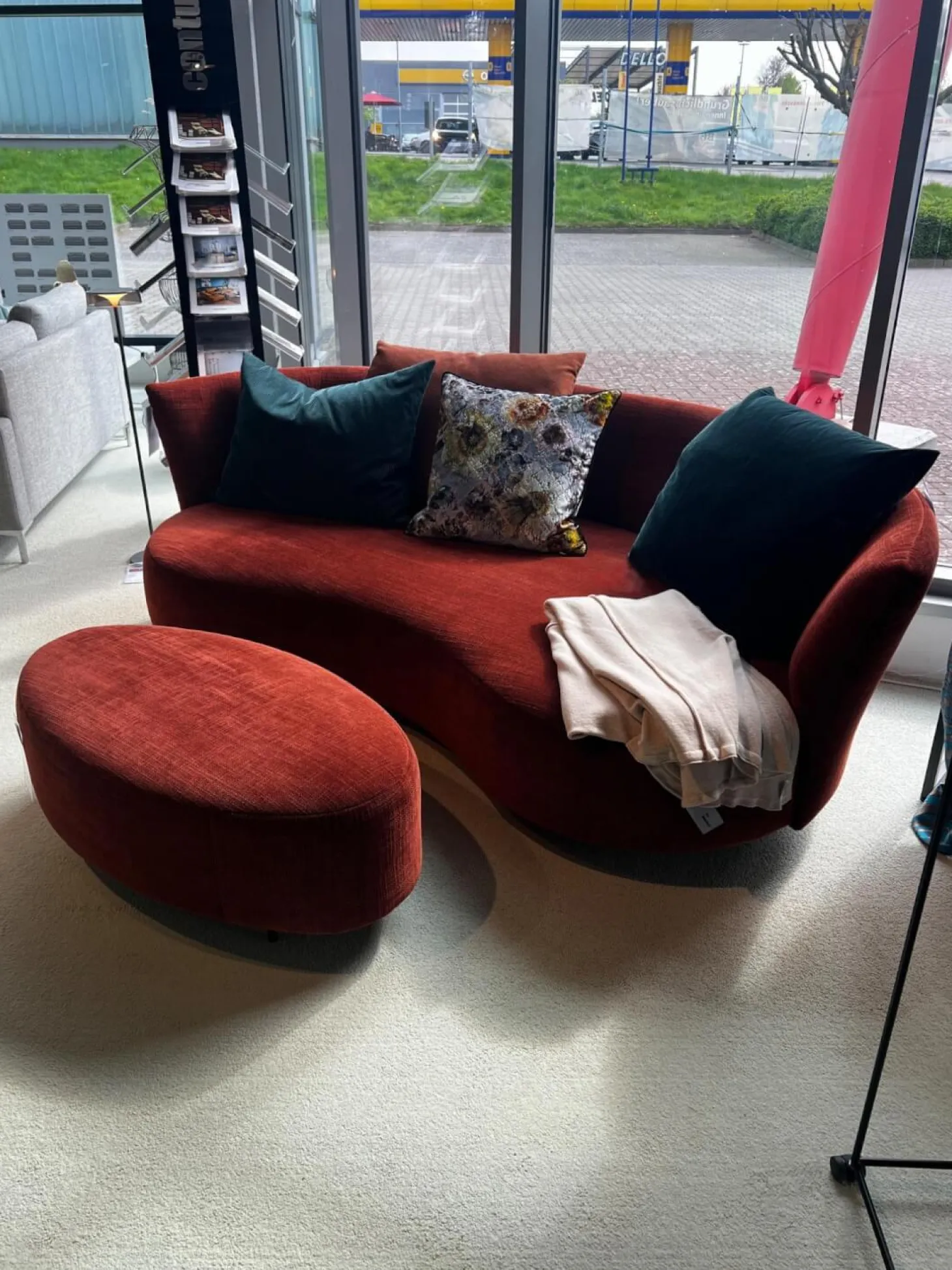 Lieferumfang: 1 Sofa, 1 Hocker, ohne Dekokissen